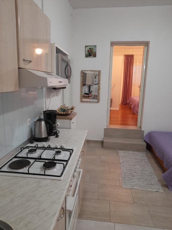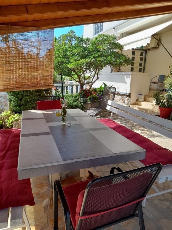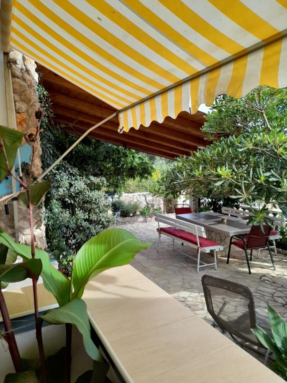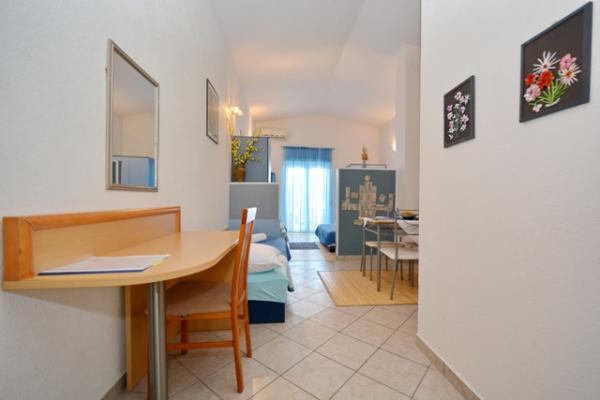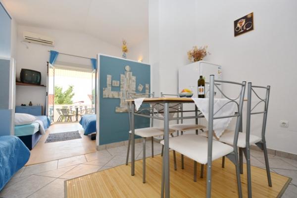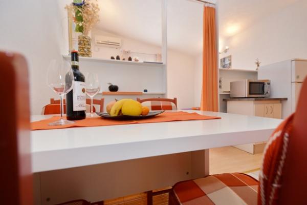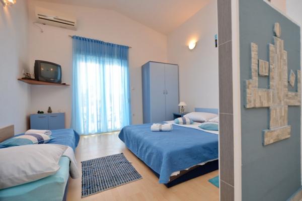 Samostojna hiša s 5 stanovanjskimi naselji v mirnem delu Starigrada. Blizu morja in plaž, restavracije, igrišča, center. Blizu narodnega parka. V sklopu objekta je majhna gostilna in žar za brezplačno uporabo. Vsak apartma ima svojo teraso (balkon s pogledom na morje) in dve veliki mizi na dvorišču.