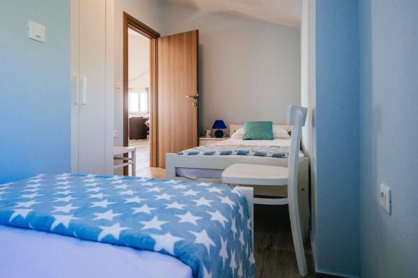 moderno opremljeni apartmaji z balkonom, dvema spalnicama in dnevno sobo s kuhinjo, pogledom na morje v mirnem delu Starigrada. 60 m od morja in 1,5 km od nacionalnega parka. Oddaljenost od centra 500 m.Parkiranje na dvorišču.