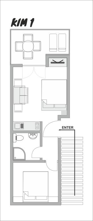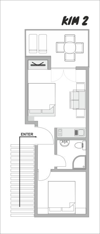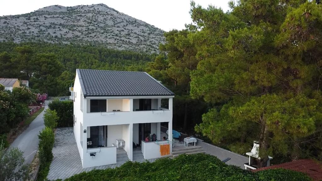 Oddajamo skupno 2 apartmaja. Apartmaji Kim se nahajajo v Starigrad-Paklenici, le 130 metrov od plaže. V radiju 400 metrov so kavarne, restavracije, trgovine, mesnica in vse, kar potrebujete za brezskrbne počitnice. Na voljo je tudi direktna avtobusna linija iz Zagreba (Zagreb-Starigrad Paklenica), ki vozi vsak dan od 15.06. do 31.8. Apartmaji se nahajajo v 1. nadstropju hiše, z ločenim vhodom z zadnje strani. Apartmaja Kim 1 in Kim 2 sta enaka, bivalna površina - 30m2 in obsegata 1 spalnico (z posteljo dimenzij 160×200 cm in omaro), kopalnico s tušem, dnevno sobo s kuhinjo in raztegljivim kavčem (160×200 cm) ter balkon velikosti 10m2. Apartmaja sta popolnoma opremljena in vključuje brisače, posteljnino, posodo. Oprema apartmaja: • WiFi • ŽAR na vrtu • MIKROVALOVNA PEČICA • KLIMATSKA NAPRAVA • PARKIRIŠČE • SUŠILEC ZA LASE • OPEKAČ KOSE, ŠTEDILNIK, APARAT ZA KAVO • PAMETNI TV