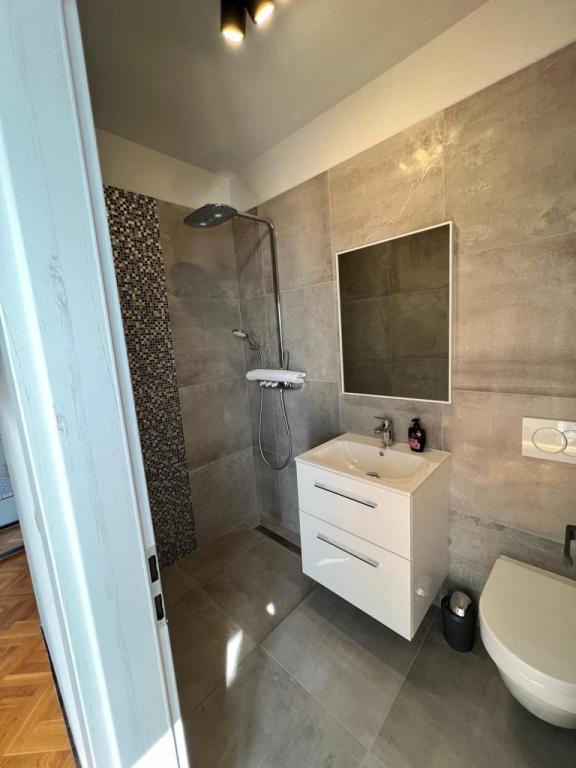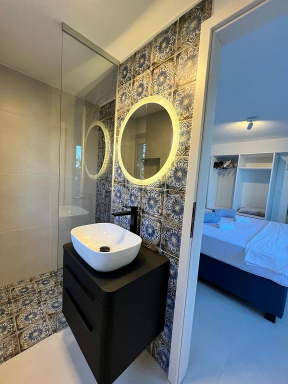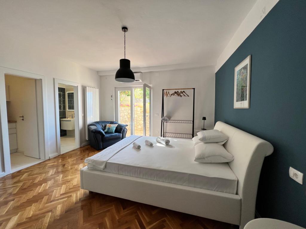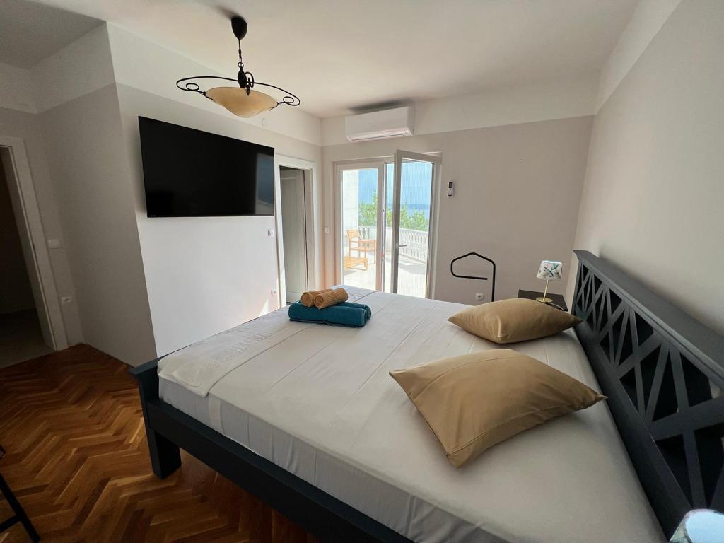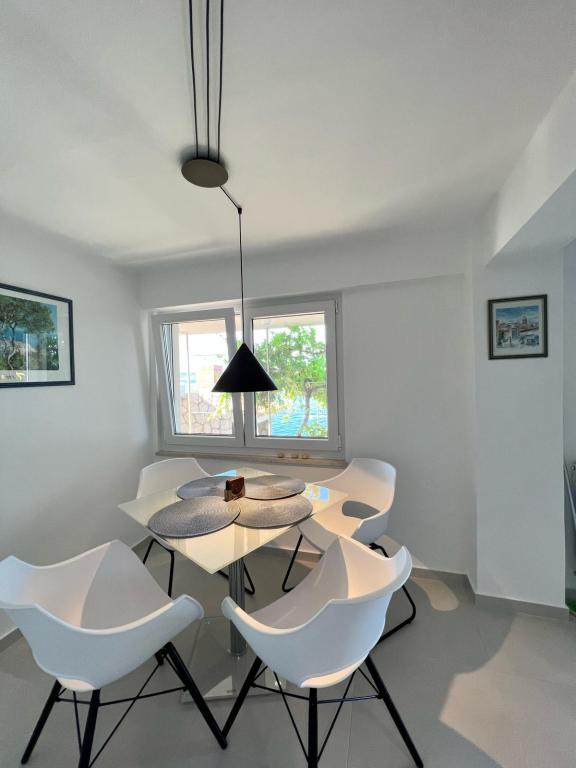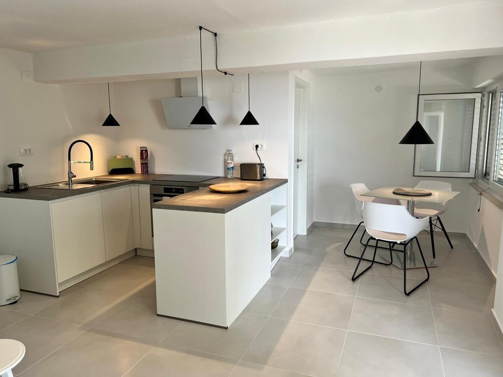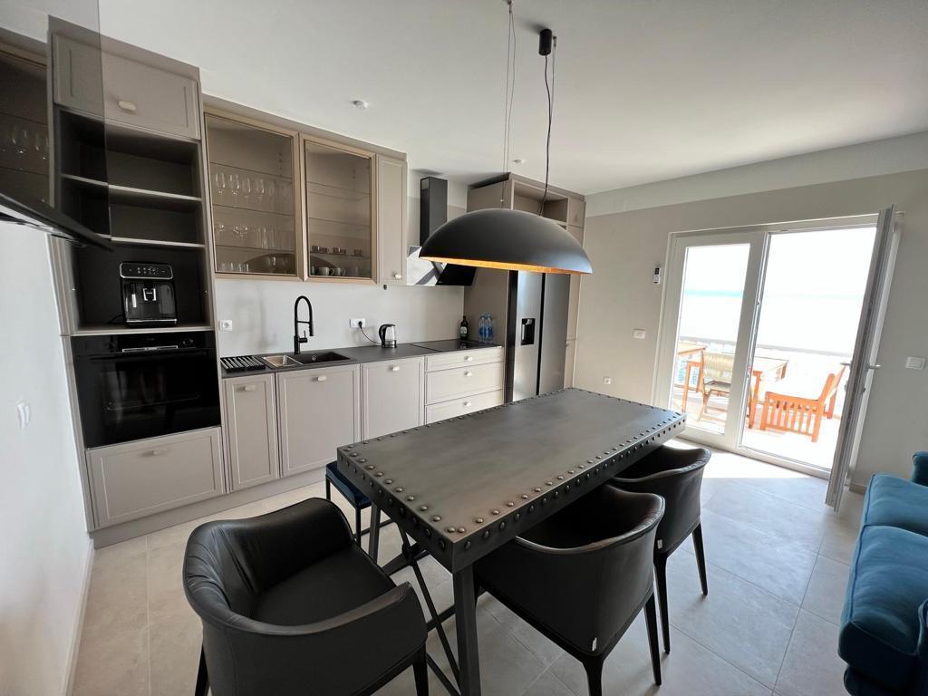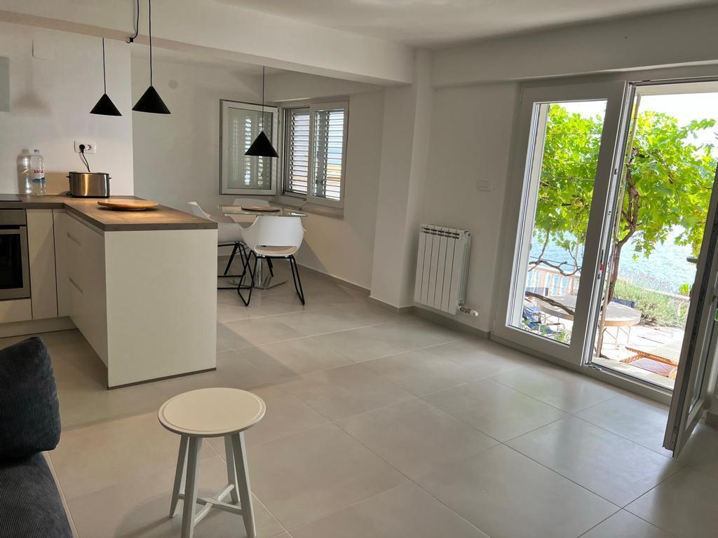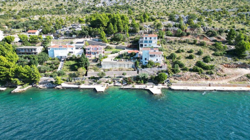 Na voljo sta 2 luksuzna apartmaja (1 za 4 osebe in eden za 5 oseb) in 1 studio apartma za 2 osebi, prva vrsta ob morju, 4 km od Starigrada-Paklenice. Uživajte v nepozabnih počitnicah v naših ekskluzivnih apartmajih, ki se nahajajo tik ob obali, z neposrednim dostopom do kristalno čistega morja. Ta namestitev ponuja vse, kar potrebujete za popoln oddih: Prostorna spalnica: Elegantno opremljena, z udobno posteljo in modernimi detajli, z lastno kopalnico, opremljeno z vrhunskimi dodatki. Popolnoma opremljena kuhinja**: Moderna kuhinja z najnovejšimi aparati, idealna za pripravo okusnih obrokov. Zasebna terasa za vsak apartma: Oaza miru s čudovitim pogledom na morje, idealna za sprostitev ob jutranji kavi ali večernem sončnem zahodu. Zunanji tuš: Uživajte v osvežilnem tuširanju pod zvezdami, obdani z naravo. Naravno okolje: Apartma se nahaja v prvi vrsti ob morju z neposrednim dostopom do plaže v idiličnem okolju, obdan z bujnim sredozemskim zelenjem in vonjem morja.