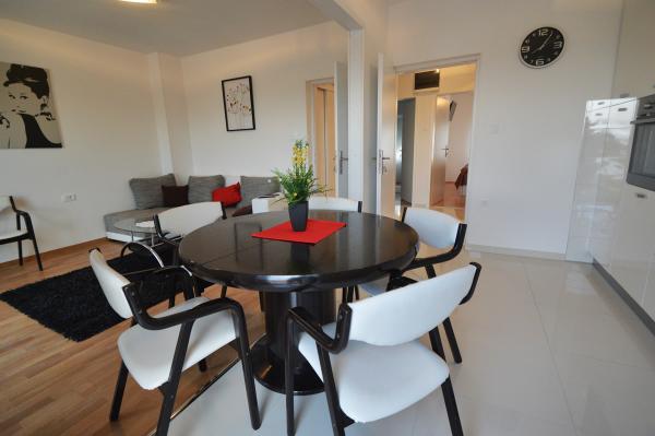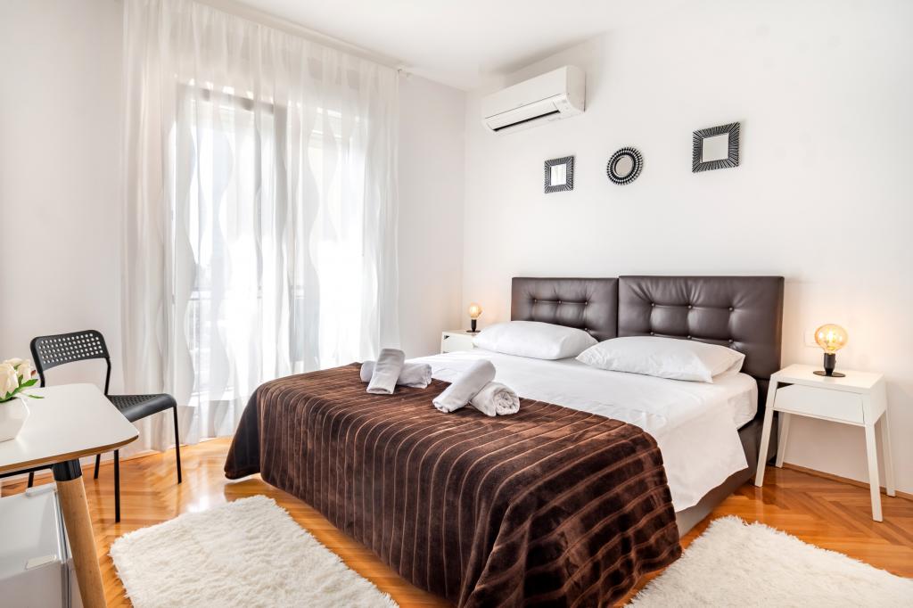 Popolnoma opremljeni in moderno apartmaji in sobe v družinski hiši s parkiriščem in velikim vrtom v centru Stobrec, stran od morja in 30m od centra Splita in Dioklecijanove palače 6 km. Vsi apartmaji imajo klimatsko napravo, stropni ventilatorji in televizijo. Teniška igrišča se nahaja 300m in 400m igrišč za golf.