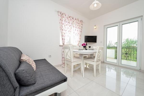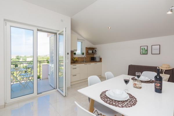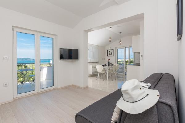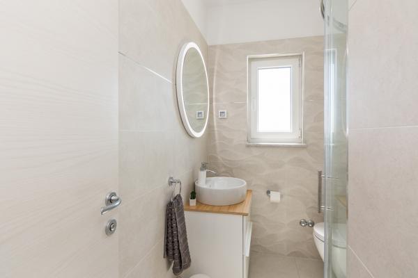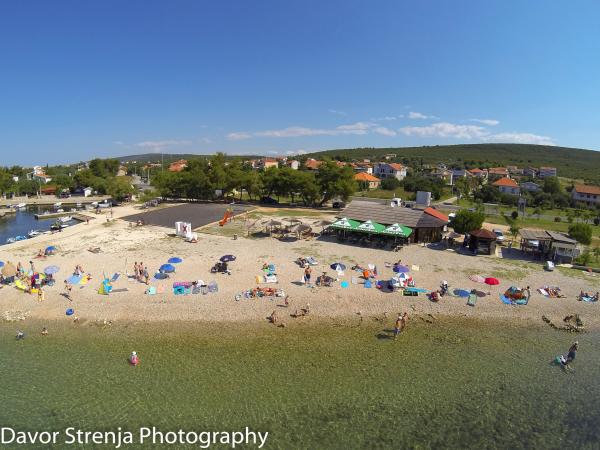 Za začetek me je navdušilo že to, da je apartma opremljen z okusom, premišljeno in funkcionalno. Poln je zanimivih detajlov (npr. super luč v spalnici), ki dajo karakter prostoru. Tako je bivanje zelo prijetno. Klima je v vsakem prostoru, a je zaradi lege in zračnosti našega apartmaja praktično nismo potrebovali. Za goste, ki še niso obiskali Sukošana, ni nobene panike, saj sta gostitelja pripravila izbor najboljših gostiln (izbor smo preizkusili in se strinjamo z njim), kontaktne podatke in menu najboljše dostave pic, dogodkov v okolici in tedensko vremensko napoved. Če pa imaš kakršnokoli vprašanje, ti gostitelja Kristina in Vinko vedno rada odgovorita. Prav tako sta nam rešila par neljubih situacij - npr. obvestila sta nas o odprtem oknu na avtu in pospravila blazine, da jih ni odpihnila nočna burja. Kapo dol. Plaža je ravno dovolj blizu (cca 150m) in ni bilo nikoli gneče. Povprečno je bila cca. ena družina ali skupina na cca vsakih 10-20 metrov. Prav tako pa je plaža super za male otroke, saj je voda tudi cca 15 m od plaže še vedno visoka največ 80 cm.