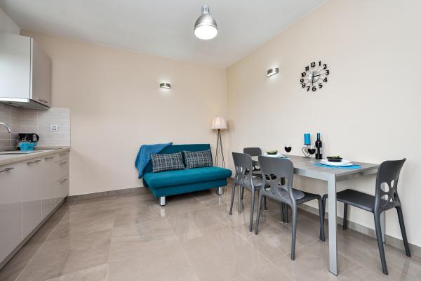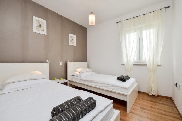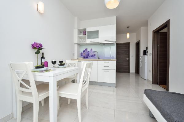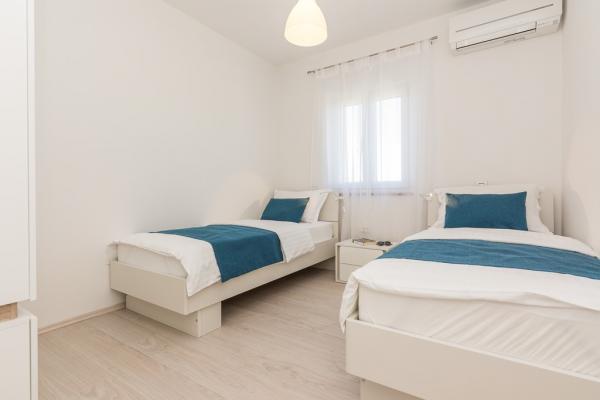 Popolnoma novi in odlično opremljeni apartmaji zelo blizu plaže. Slike v predstavitvi apartmajev so realne. Ne samo, da je apartma klimatiziran, klima je celo v vsaki sobi. Vse potrebno za bivanje je v apartmaju. Lastnika sta zelo gostoljubna in ustrežljiva.