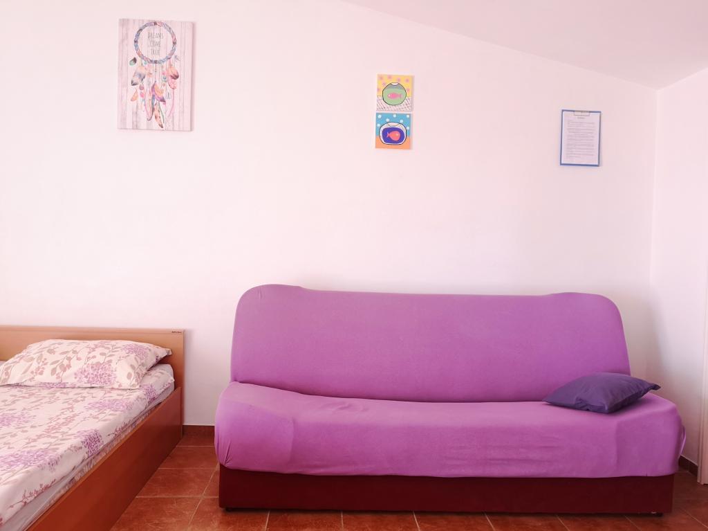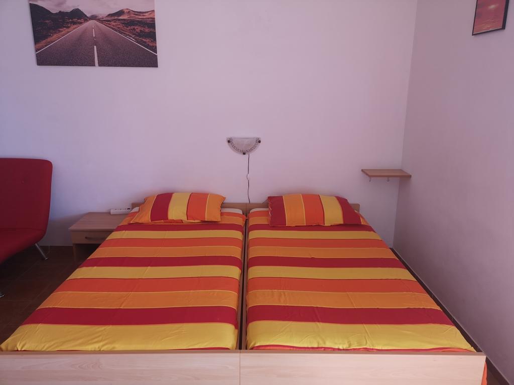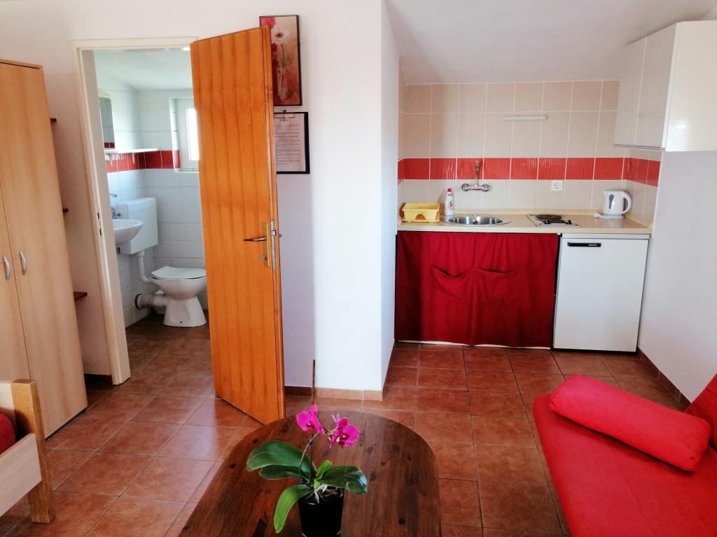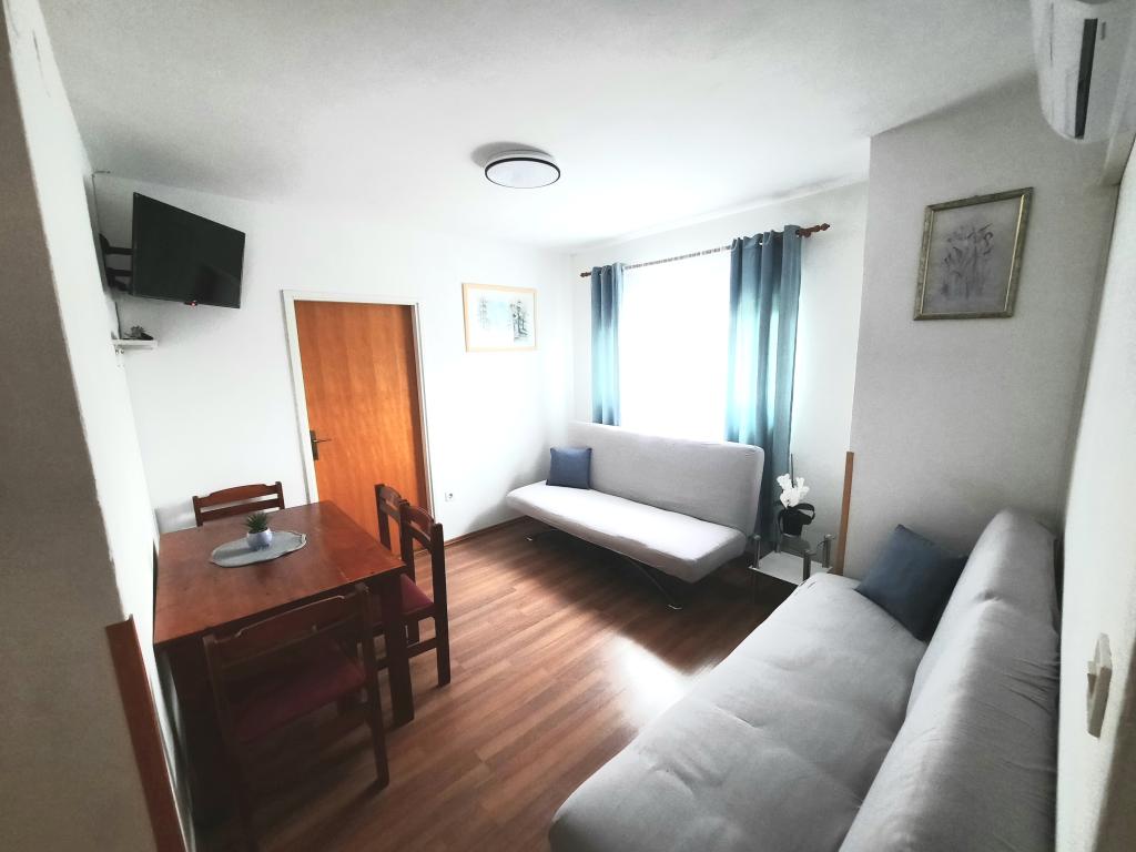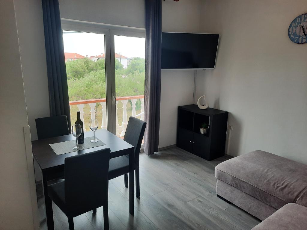 Nahajamo se v Sukošanu, 8 km od mesta Zadar. Apartmaji se nahajajo med glavno cesto in morjem v mirnem delu mesta. V prvem nadstropju imamo enosobna apartmaja, v drugem nadstropju pa so studio apartmaji s terasami z odprtim pogledom na morje. Apartmaji se nahajajo 10 minut hoje od glavne plaže "Dječji raj", 5-7 minut hoje od stranske plaže "Soline" in 5 minut od centra mesta. Cena vključuje turistično takso, klimatsko napravo in Wi-Fi. Želimo vam prijeten dopust!