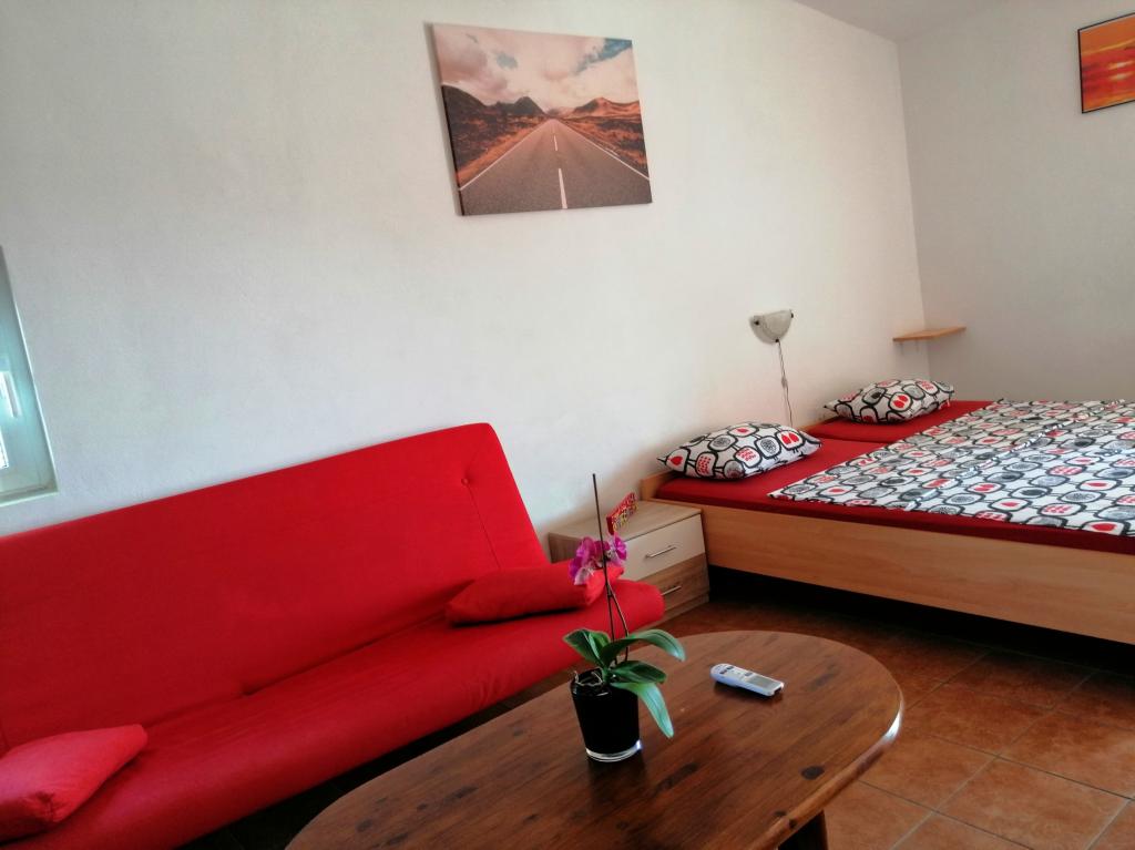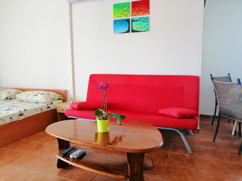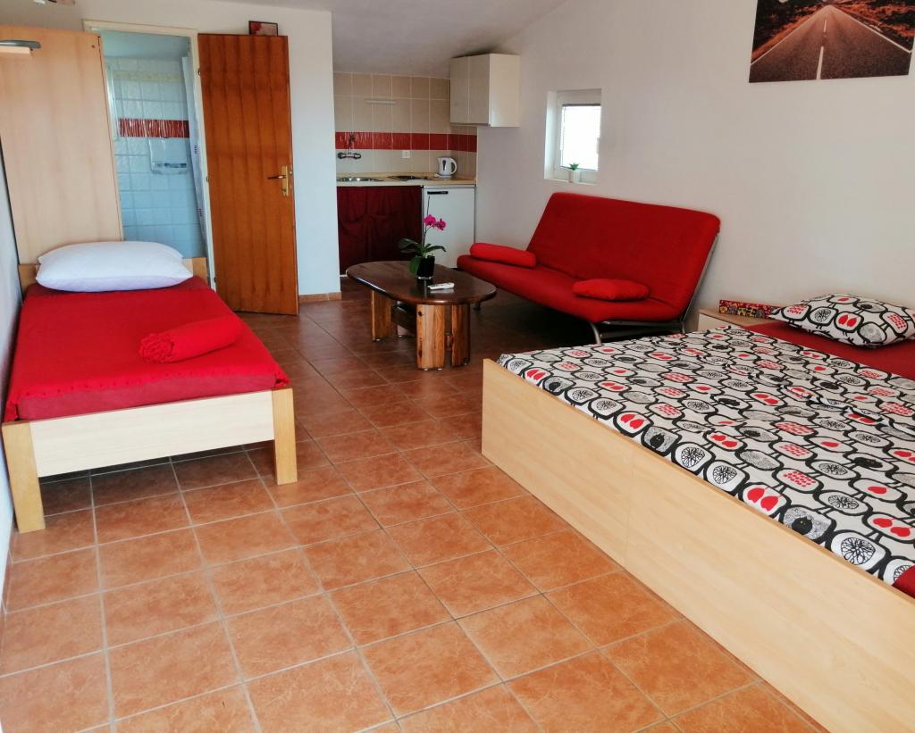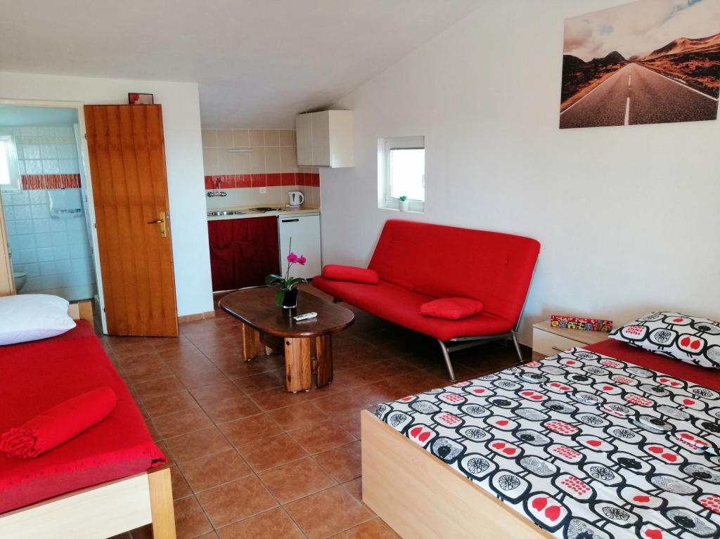 Nahajamo se v Sukošanu, 8 km od mesta Zadar. Apartmaji se nahajajo med glavno cesto in morjem v mirnem delu mesta. V prvem nadstropju imamo enosobna apartmaja, v drugem nadstropju pa so studio apartmaji s terasami z odprtim pogledom na morje. Apartmaji se nahajajo 10 minut hoje od glavne plaže "Dječji raj", 5-7 minut hoje od stranske plaže "Soline" in 5 minut od centra mesta. Cena vključuje turistično takso, klimatsko napravo in Wi-Fi. Želimo vam prijeten dopust!