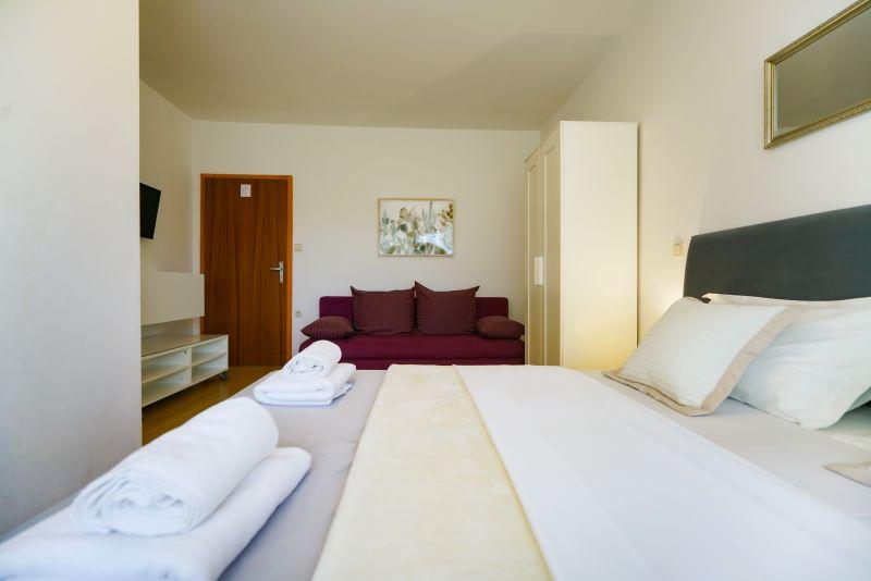 Apartma je bil prostoren. Zelo čist.Z dvema kopalnica. Dobro opremljena kuhinja. Velika terasa na senčni strani. Plaža 30 m stran. Osebje zelo prijazno in ustrežljivo. Gospod Mateo zelo prijazen in ustrežljiv. Skratka čista petka