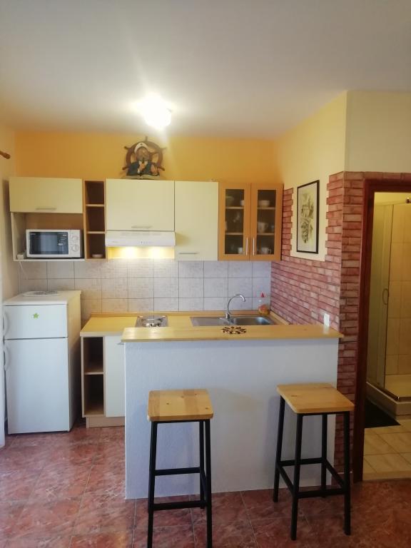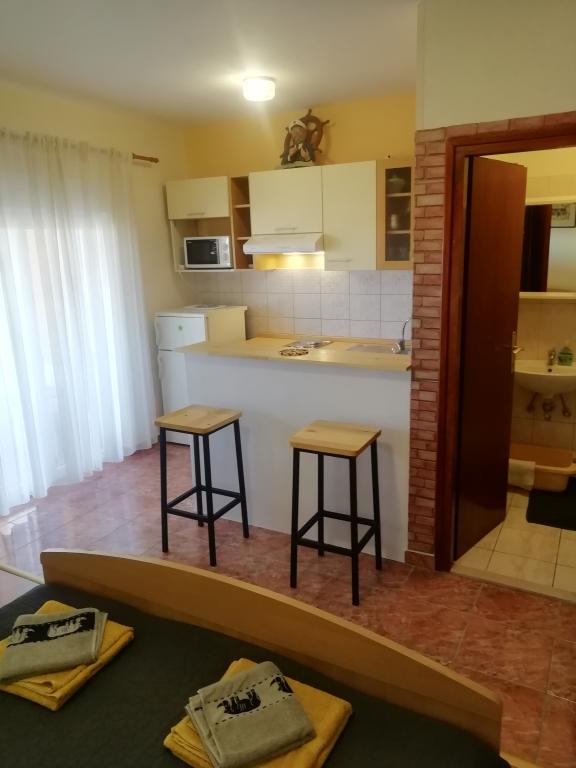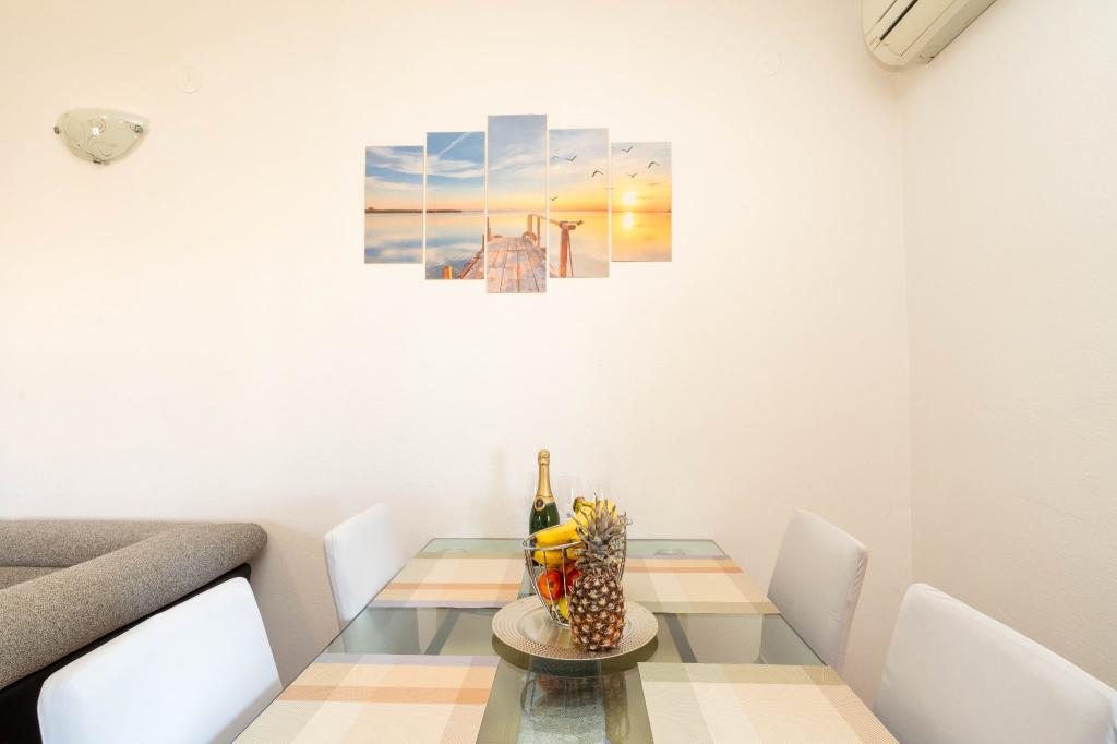 Ravno vse, kar potrebujete od nastanitve za prijetno bivanje na morju, več kot to pa je lepa terasa s pogledom na morje in okoliške otoke. Čudovita narava in mir, tako kot si večina želi počitnic. Prijazni in ustrežljivi lastniki, vse skupaj pozitivne in prijetne počitnice in bivanje v tem apartmaju.