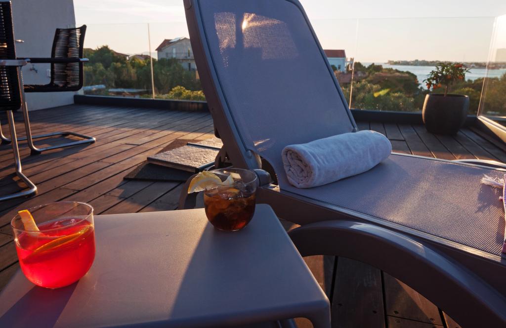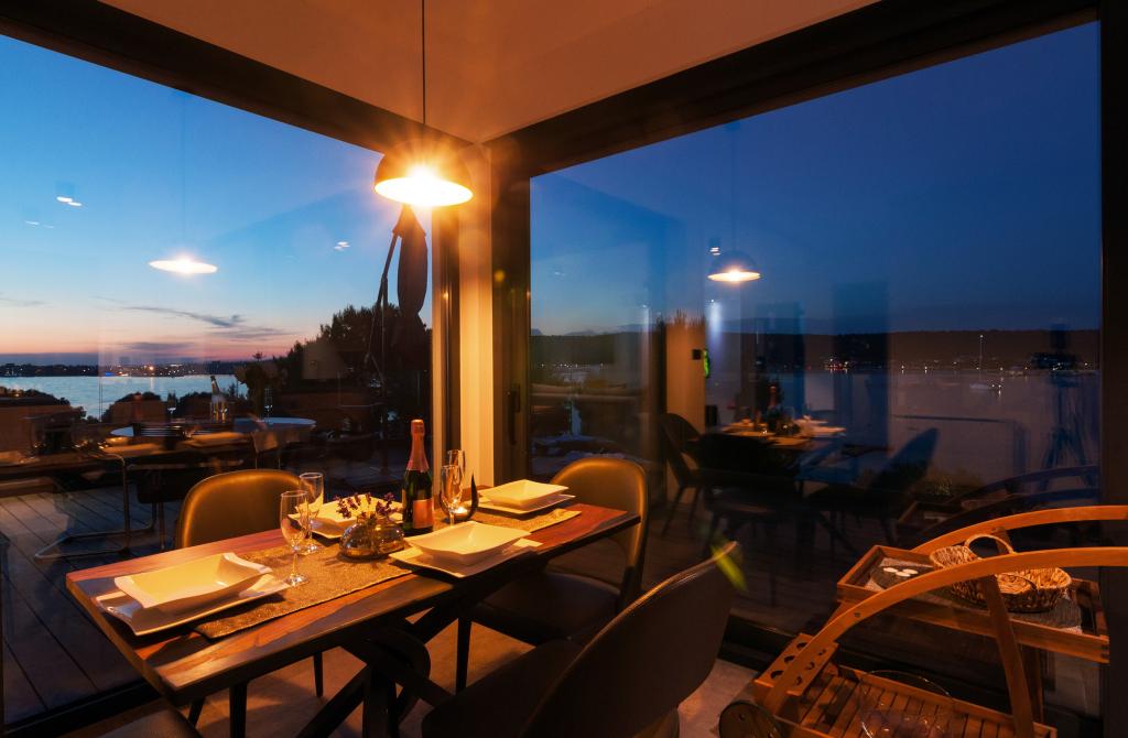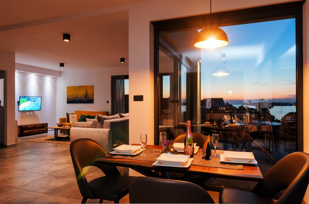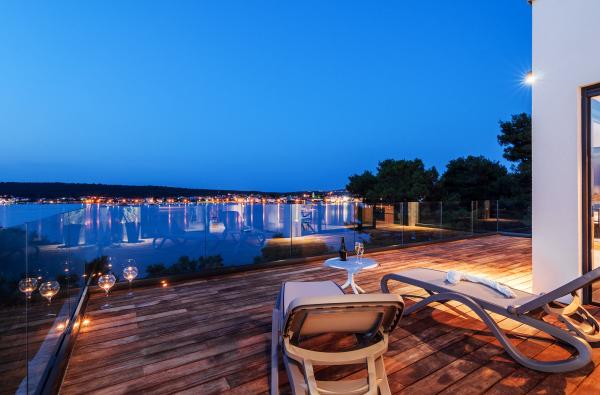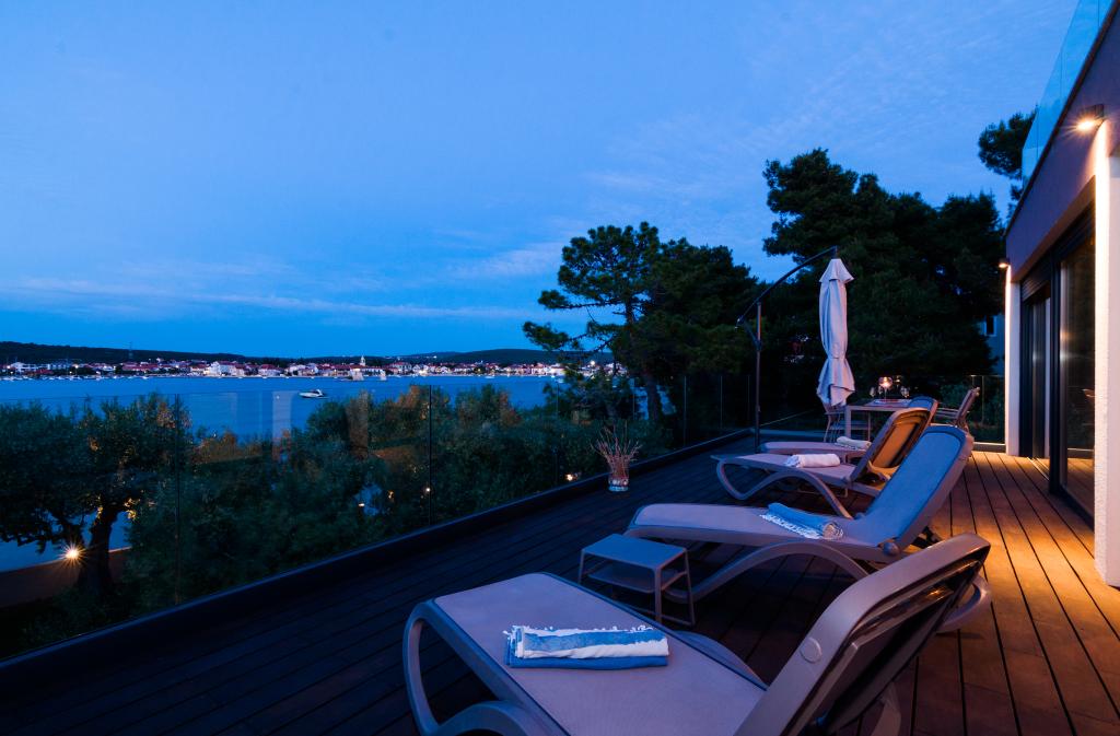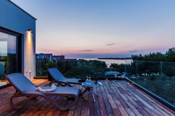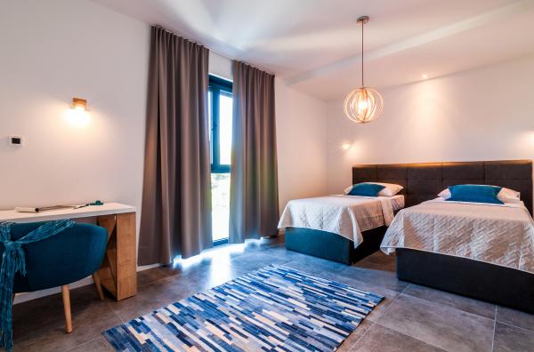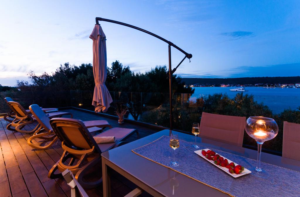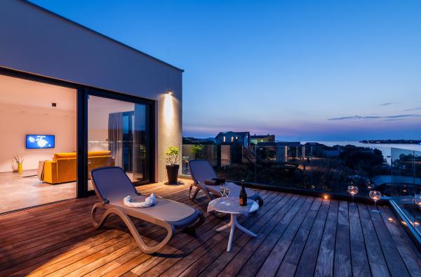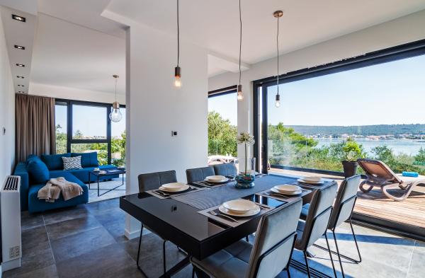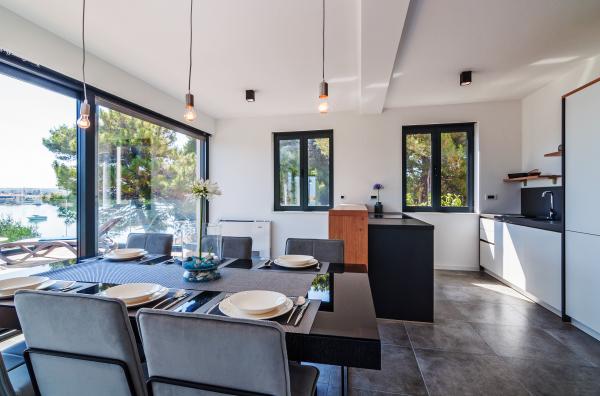 Vila Punta Aqua je luksuzno urejena v sodobnem in funkcionalnem slogu, idealna za uživanje v senci oljk in v morju s čudovitim peščenim dnom. Od plaže je le nekaj metrov. Razdeljen je na 3 nadstropja. V pritličju je trosoben apartma s tremi kopalnicami in dodatnim WC-jem ter veliko teraso 35m2. V prvem nadstropju je dvosoben apartma z 2 kopalnicama in dodatnim straniščem. Velik balkon od 37m2 je idealen za sproščanje in uživanje v prekrasnem pogledu na morje. V drugem nadstropju je razkošen enosobni apartma s kopalnico in dodatnim straniščem. Apartma ima čudovit prostoren balkon s pogledom na morje. Vila je idealna za uživanje, počitnice in druženje s čudovitim pogledom na morje.