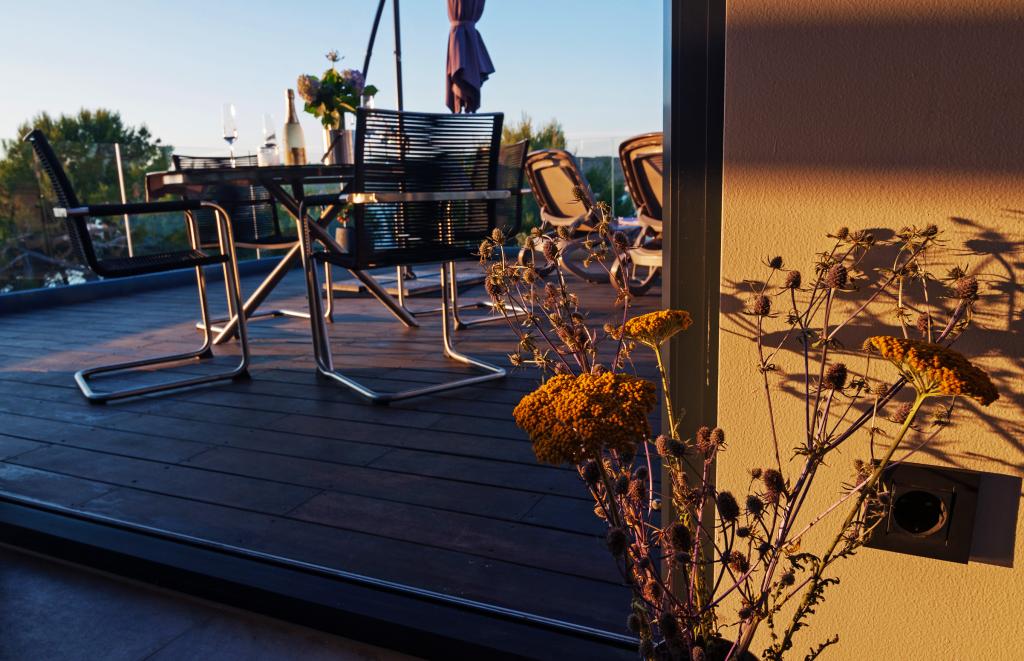 Vila ima nizko porabo energije. Ima vgrajen sistem ogrevanja in hlajenja, ki nudi udoben občutek doma. Naprave so v vsaki sobi. Sat / tv v vseh sobah. Pralni stroj, pomivalni stroj, indukcijski štedilnik, sončne celice, parkirni prostor