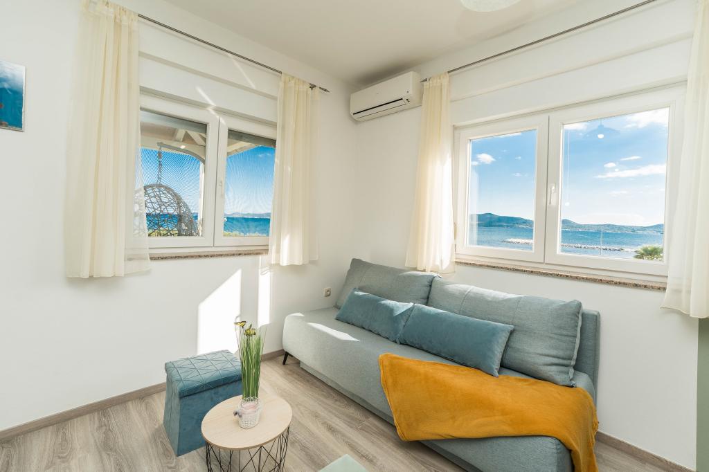 Popolnoma opremljen do najmanjših podrobnosti. Prostorna terasa, pogled na morje, plaža ob apartmaju, zelenje okoli hiše, varen parkirni prostor. Gostitelji po želji, topli, prisrčni, da se počutite kot doma, vas presenetijo z večerjo, domačim sadjem, zelenjavo in oljčnim oljem ... Načrtujemo se vrnitve!