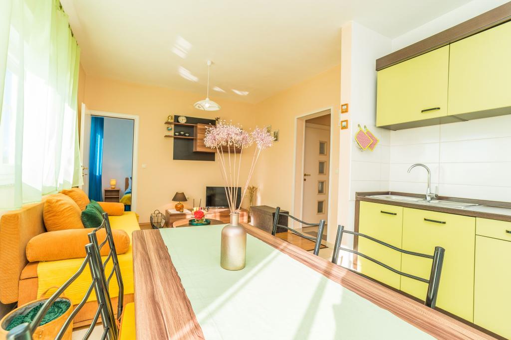 S teboj, Franić, smo preživeli 10 lepih dni, ki se zdijo prekratki iz perspektive nekaj dni po vrnitvi. Oba apartmaja (ker so drugega najeli prijatelji, s katerimi smo potovali) sta v celoti izpolnila naša pričakovanja in potrebe. Terase na več straneh stanovanja so zelo dobra rešitev, ko želite prelisičiti žgoče sonce. Od apartmajev zelo blizu plaž 50-100 m (odvisno od izbranega mesta na plaži), lahko celo s terase opazujete otroke, ki se igrajo na plaži. Z nasprotne strani se razprostirajo pogledi na morje, otoke in Velebit. Bližina tržnice, pekarne, stojnice s sadjem in zelenjavo, restavracije - cca 200 m, nahajajo pa se ena poleg druge. Soseska in plaža sta tihi in mirni. Popolna sprostitev zagotovljena. V bližini tekaške in kolesarske poti. Osebno sem izbral 5,2 km dolgo pot Trip Stanza. Za tiste, ki niso zadovoljni s kopanjem, snorkljanjem, tekom in sončenjem, priporočamo izlete in oglede ne samo Sukošana, ampak tudi drugih krajev. Lokacija Sukošana nam je omogočila obisk Zadra in Šibenika. Bili smo tudi v nacionalnem parku Krka (slapovi), na razgledni točki Kamenjak, od koder se lepo vidi Vransko jezero in Jadransko morje. Obiskali smo celo pred mesecem dni odprte Cerovačke jame in čudovito dolino reke Zrmanje, kjer so snemali filme o Winnetouju. Seveda se zavedamo, da je bilo možnosti ogledov veliko več, a časa je bilo premalo. Kar se tiče gostiteljev, so bili zelo vljudni in gostoljubni. Pripravljeni so pomagati in podpirati z nasveti, jezikovno razumljivimi med pogovori. Zahvaljujemo se gospe Matyldi za palačinke iz bučk, pošastno velika, a izjemno okusna tradicionalna pekovska jed (tudi tukaj smo opazili veliko angažiranost gostitelja) in poslovilne spominke. Obljubili smo, da se bomo vrnili, tako da ... če bi bili z vidika naših gostiteljev sprejemljivi in če bi lahko, bi se vrnili v ta čudovit kraj.