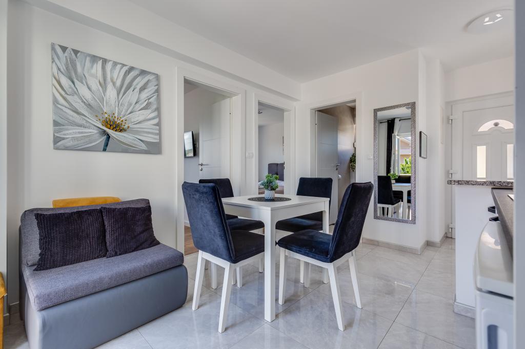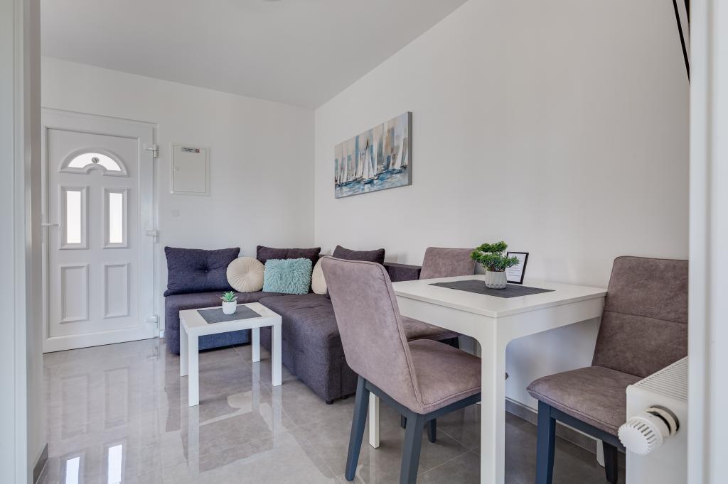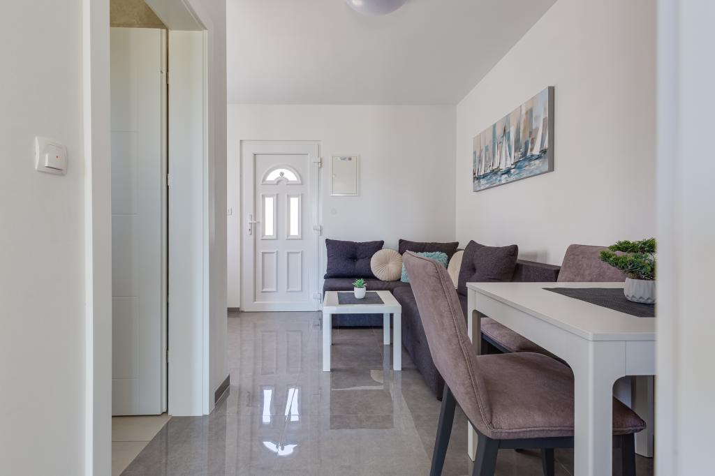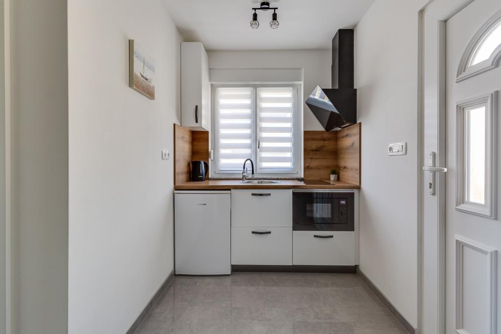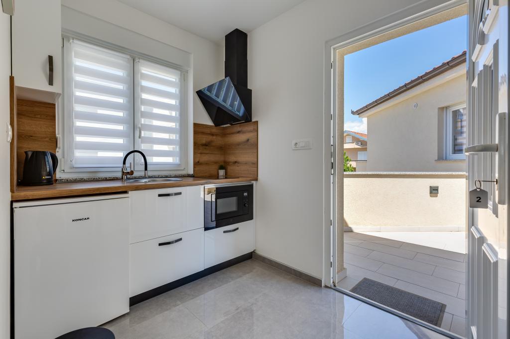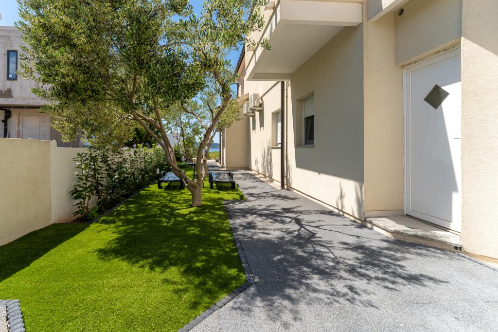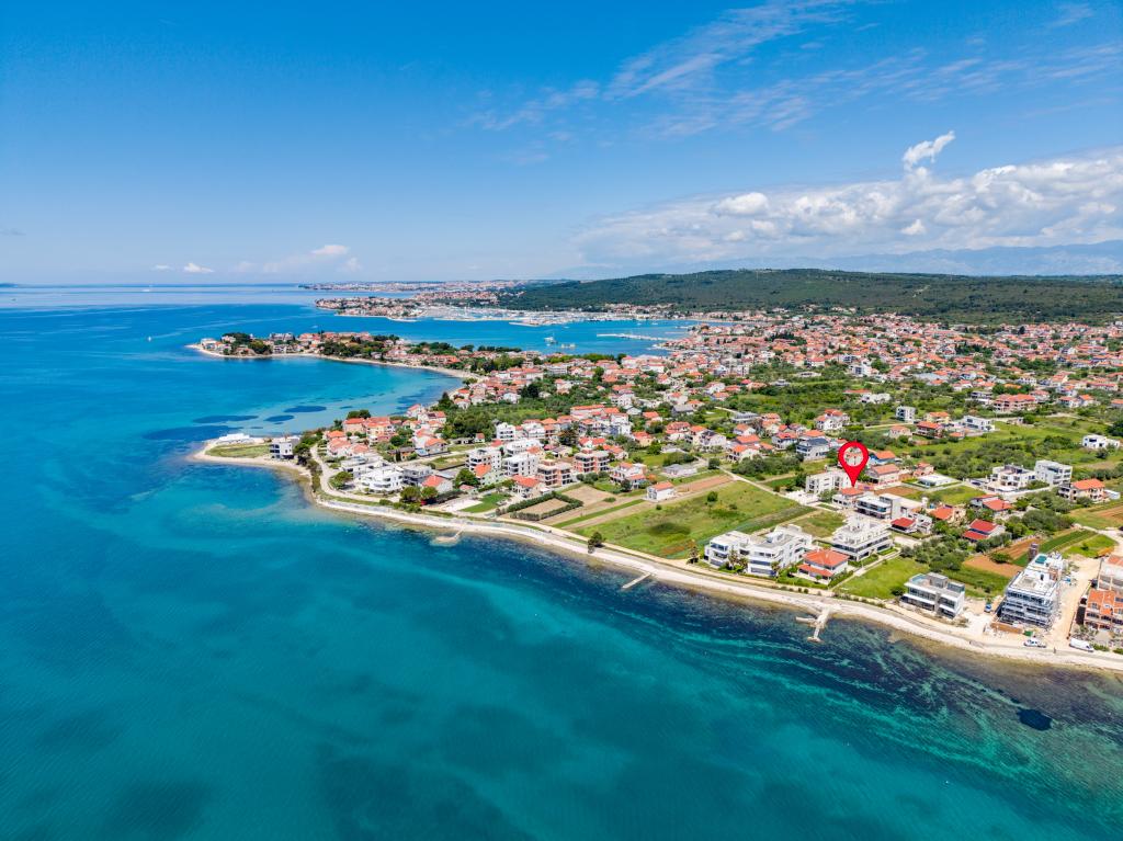 Popolnoma in moderno opremljeni apartmaji v mirnem predelu Sukošana. Nahajajo se 100 metrov od morja in kamnite plaže. Nepremičnina se nahaja 400 metrov od peščene plaže Djećji raj in 500 metrov od centra mesta in drugih objektov. Gostje se lahko sprostijo in uživajo v tej udobni namestitvi in pogledu na morje.Na dvorišču je skupni žar