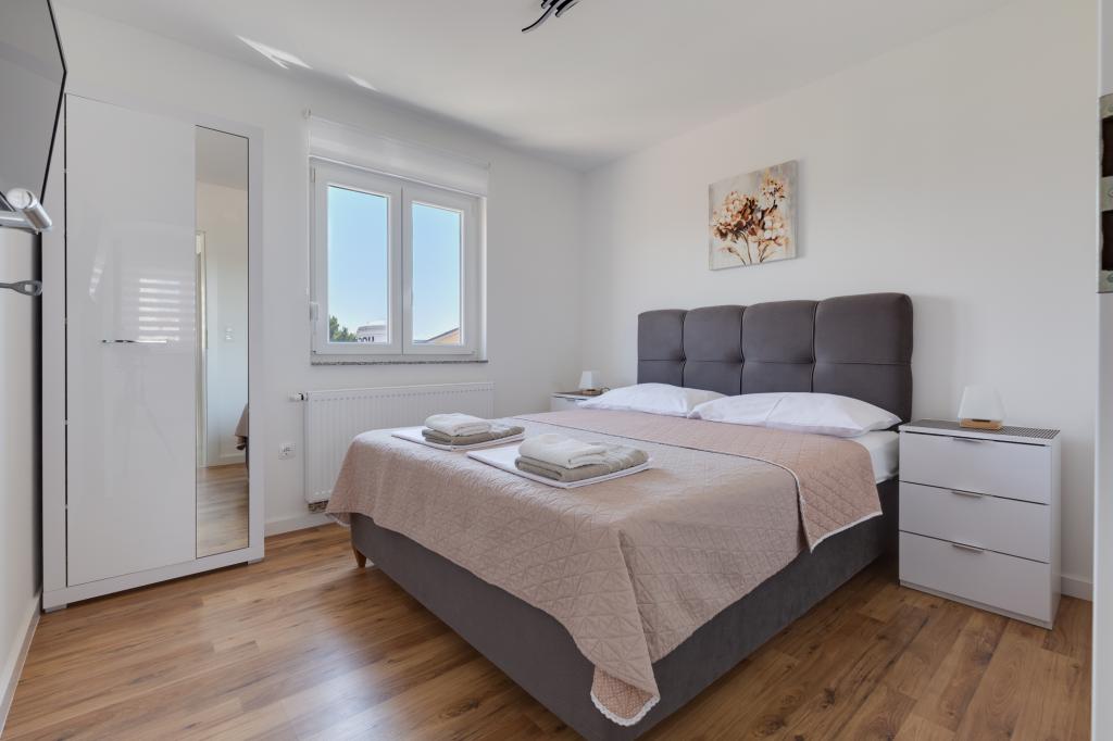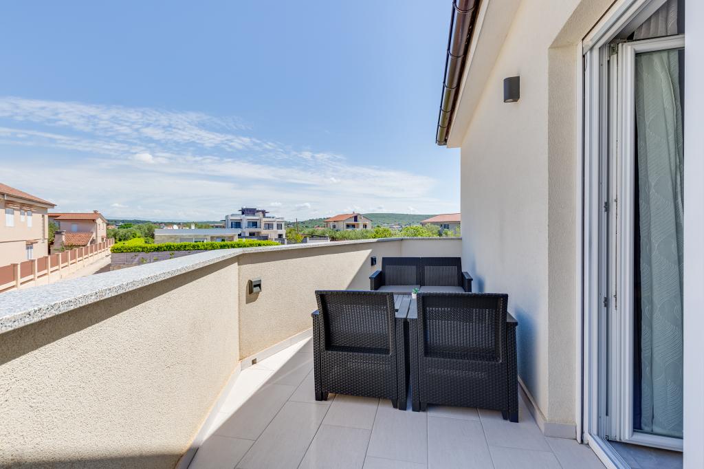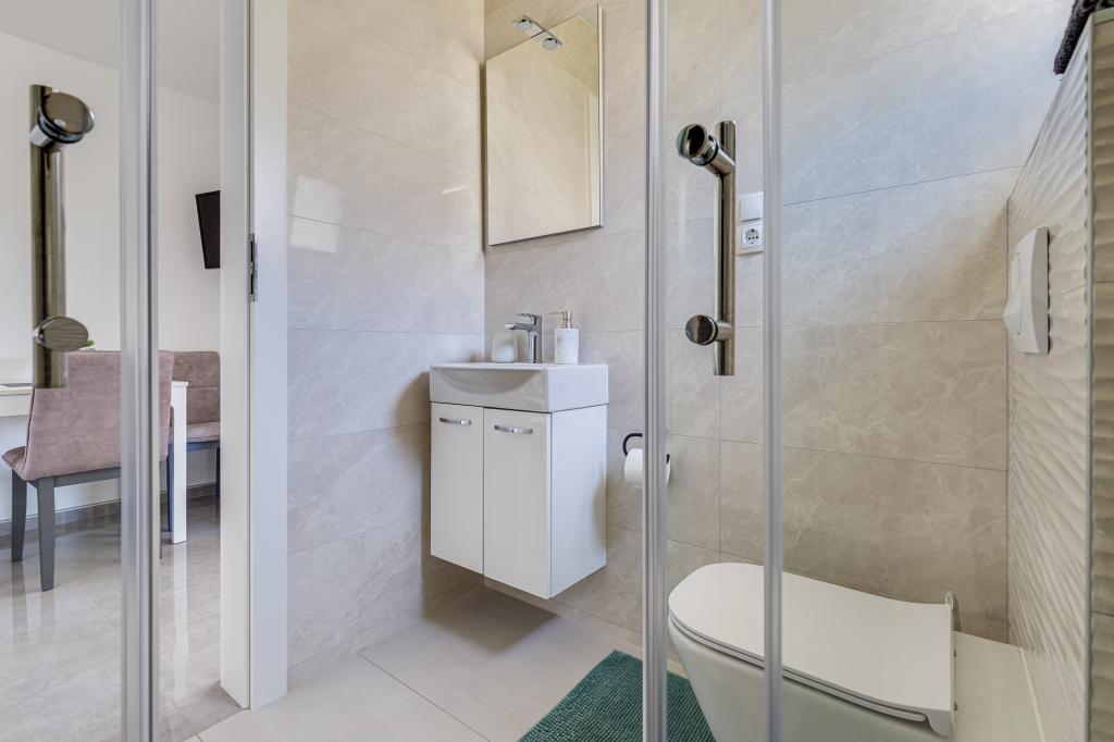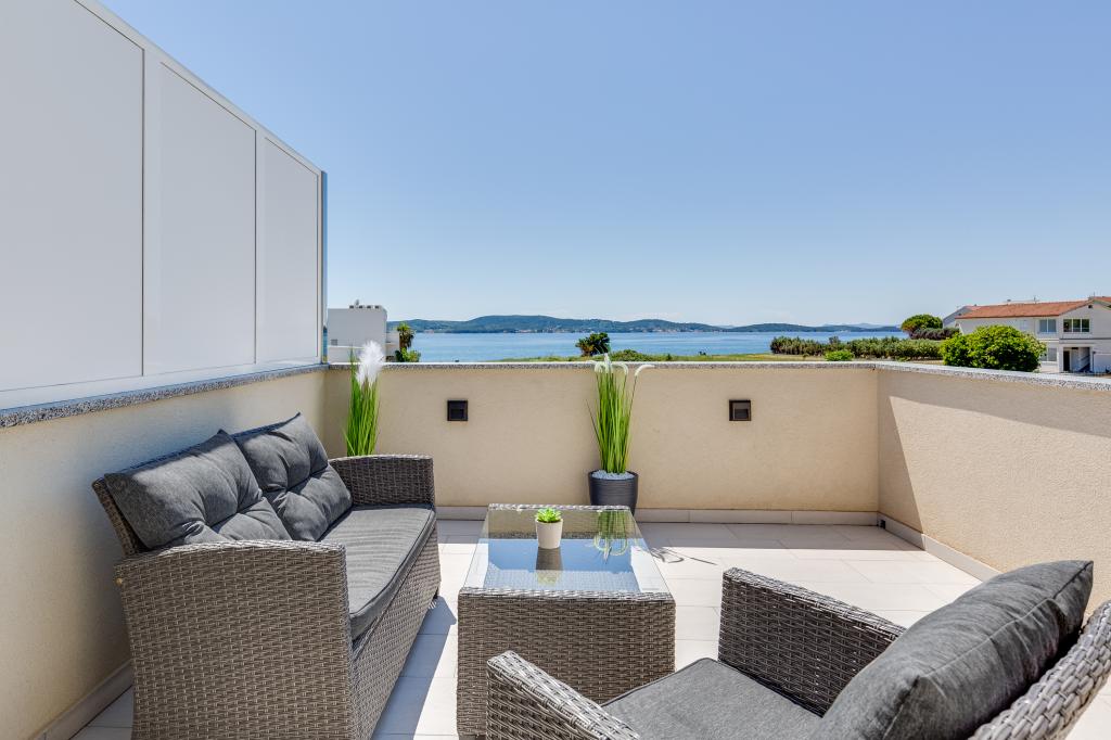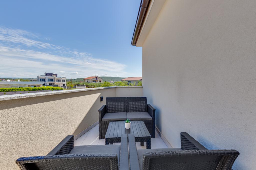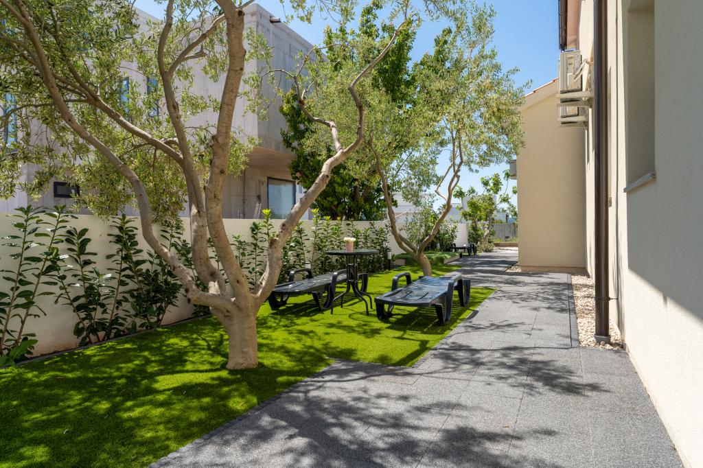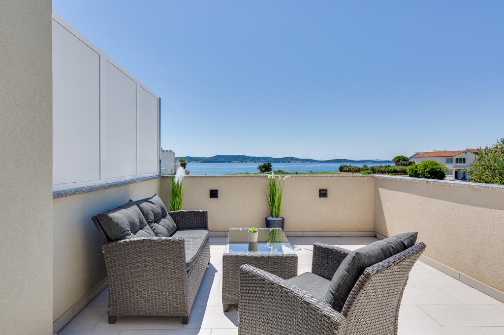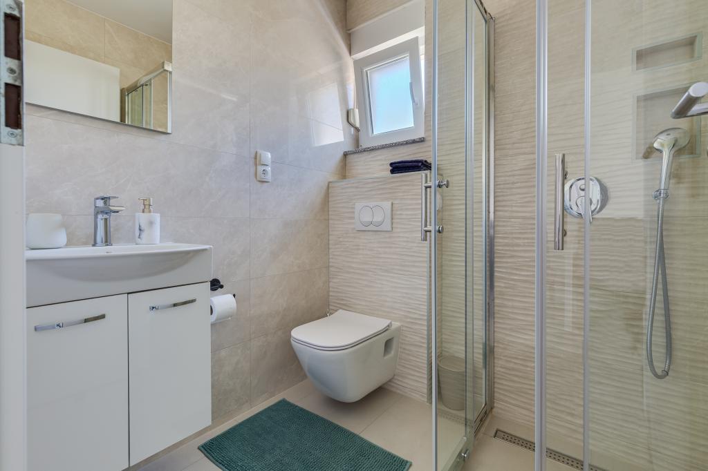 Popolnoma in moderno opremljeni apartmaji v mirnem predelu Sukošana. Nahajajo se 100 metrov od morja in kamnite plaže. Nepremičnina se nahaja 400 metrov od peščene plaže Djećji raj in 500 metrov od centra mesta in drugih objektov. Gostje se lahko sprostijo in uživajo v tej udobni namestitvi in pogledu na morje.Na dvorišču je skupni žar