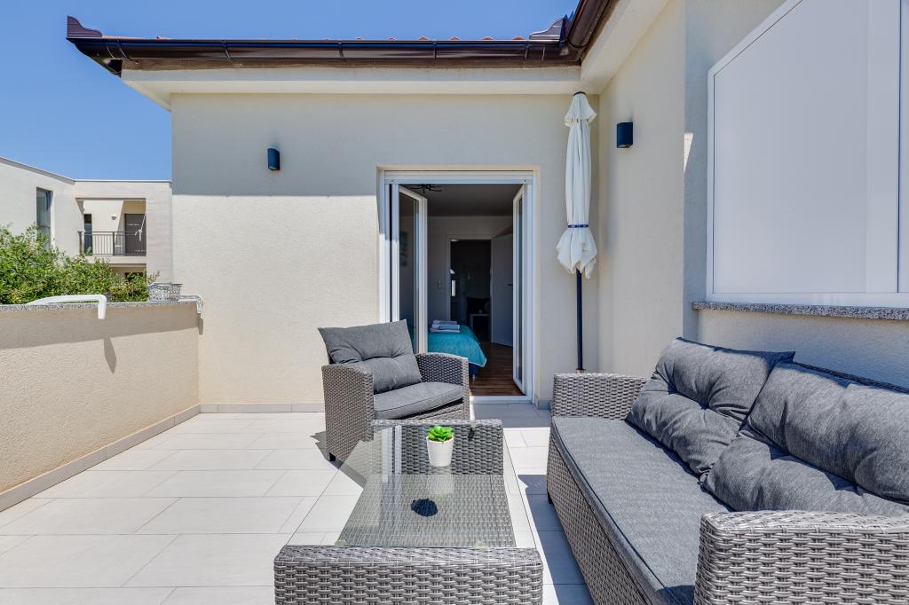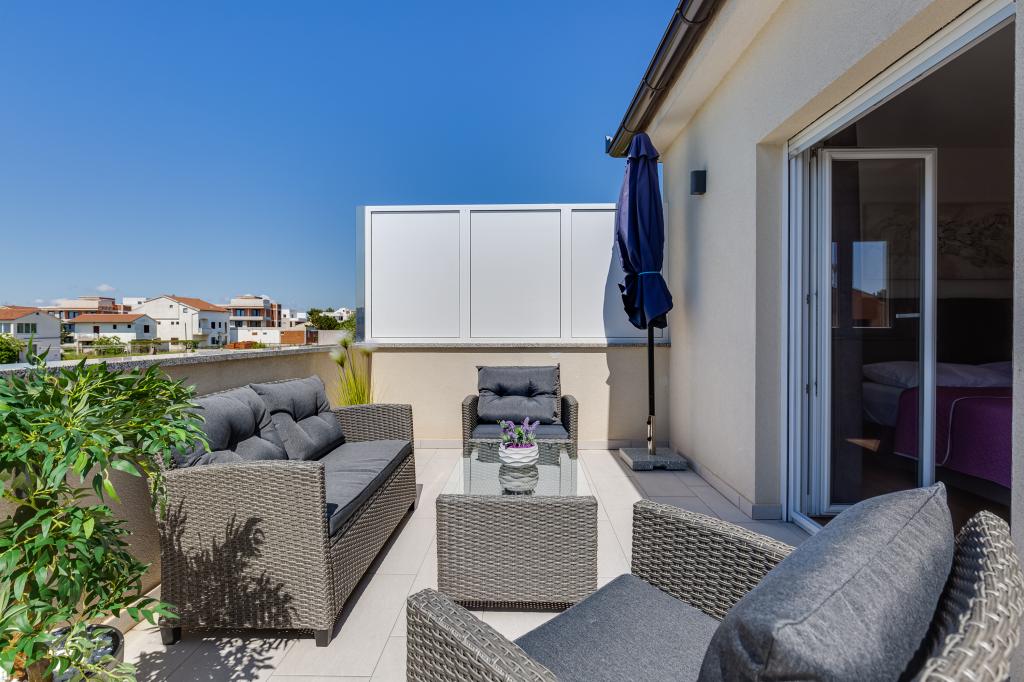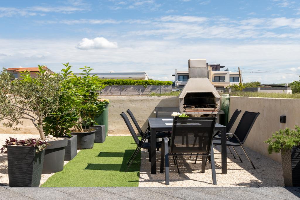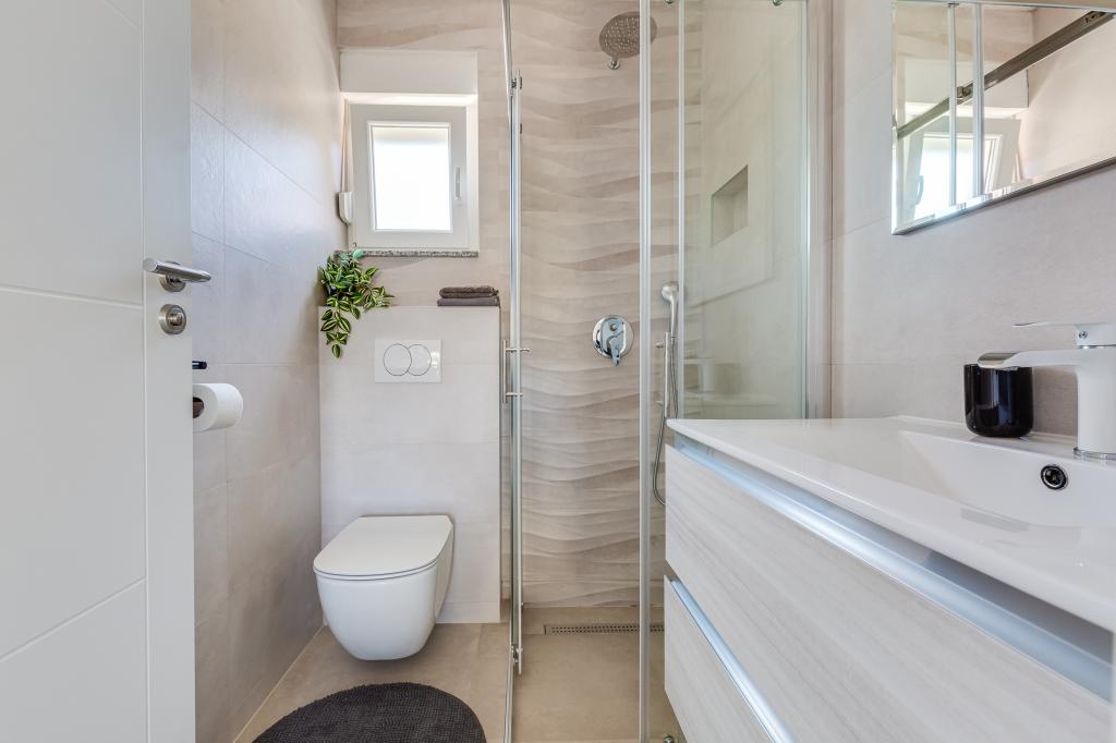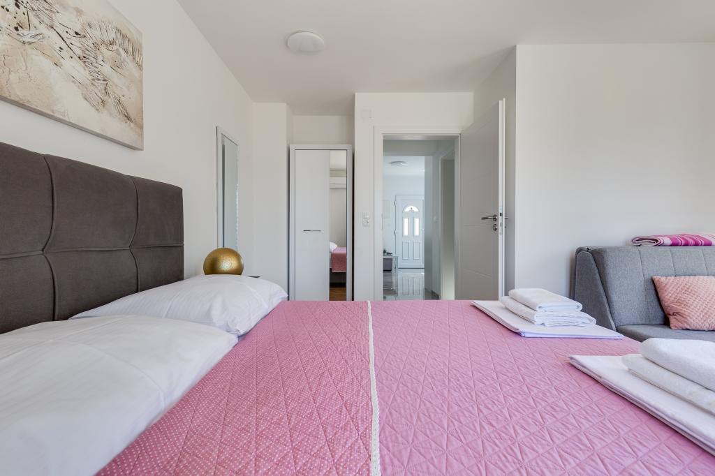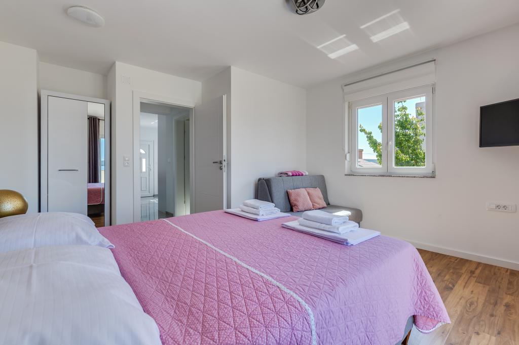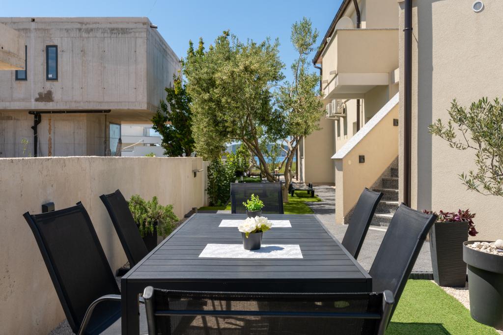 Popolnoma in moderno opremljeni apartmaji v mirnem predelu Sukošana. Nahajajo se 100 metrov od morja in kamnite plaže. Nepremičnina se nahaja 400 metrov od peščene plaže Djećji raj in 500 metrov od centra mesta in drugih objektov. Gostje se lahko sprostijo in uživajo v tej udobni namestitvi in pogledu na morje.Na dvorišču je skupni žar