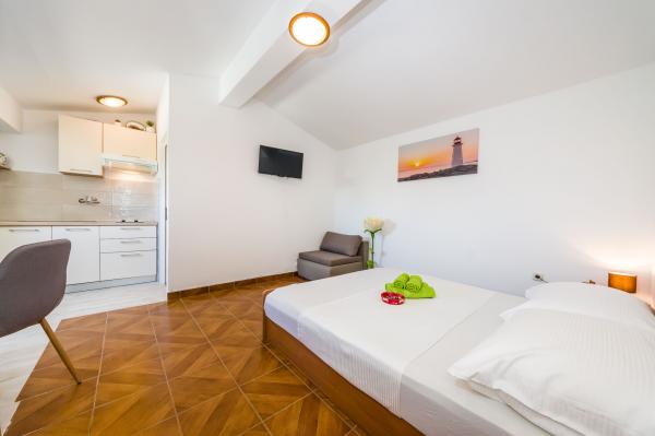 Na novo zgrajen in popolnoma opremljeni apartmaji na mirni lokaciji Sukošan, ki se nahaja na morju drugo. Objekt se nahaja 1 min hoje do plaže in 10 minut hoje do centra. Imamo dva ločena apartmaja od drugih na terenu in prvem nadstropju in so primerna za hišne ljubljenčke. Na drugem nadstropju hiše imamo dva apartmaja z namenom, da se spomnimo. Na vrtu je travnik in vrt za otroke. Vas prosimo, da uporabljajo žar na dvorišču. Brezplačen WiFi internet. Zagotovljen parkirni prostor.