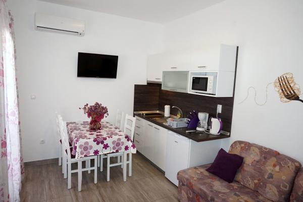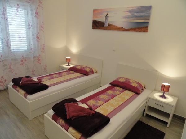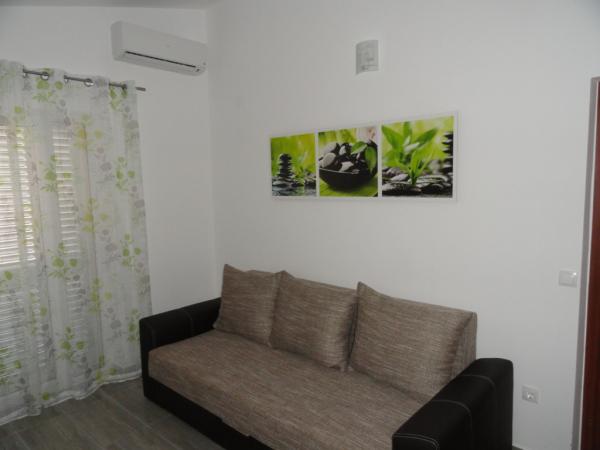 Hiša ima dva apartmaja in tri sobe. Apartmaji in sobe so sodobno in okusno urejeni in se nahajajo v hiši, ki je bila popolnoma prenovljena leta 2014. Na dvorišču je skupni bazen s prostorom za sončenje. Vsak apartma in soba ima svojo klimatsko napravo. Naši apartmaji in sobe so oddaljeni 300 m od plaže Zlatna luka in 400 m od plaže v marini Dalmacija ter 10 minut lahke hoje od centra Sukošana.