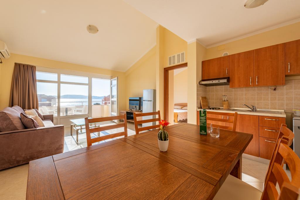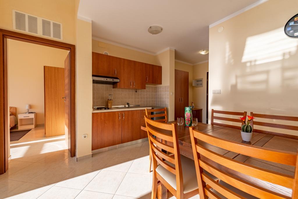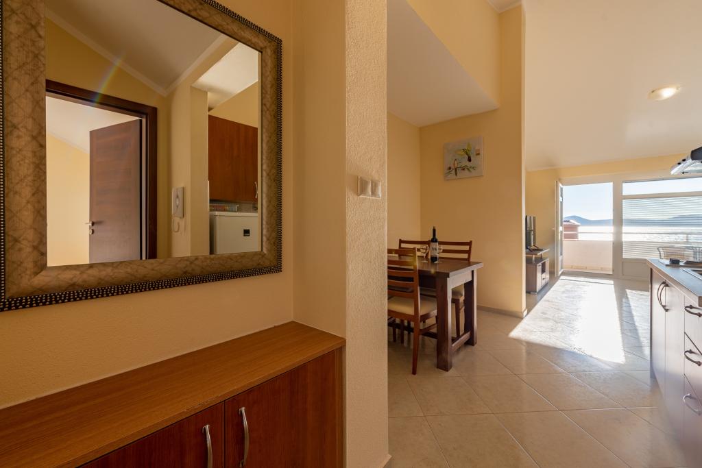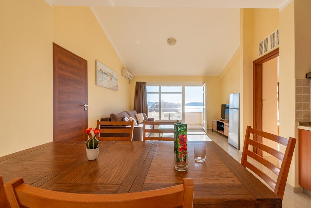 Apartma je dobro opremljen in ima dva balkona s čudovitim pogledom na morje. Klimatska naprava vam omogoča prilagajanje sobne temperature glede na vreme. Lokacija je idealna za družine z otroki, skoraj neposredno na plaži, a vseeno mirna. V bližini je otroška plaža s peščenim dnom. Osebje je prijazno in ustrežljivo.