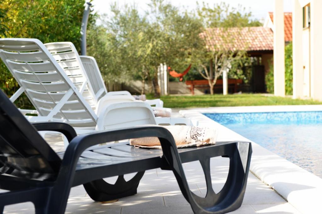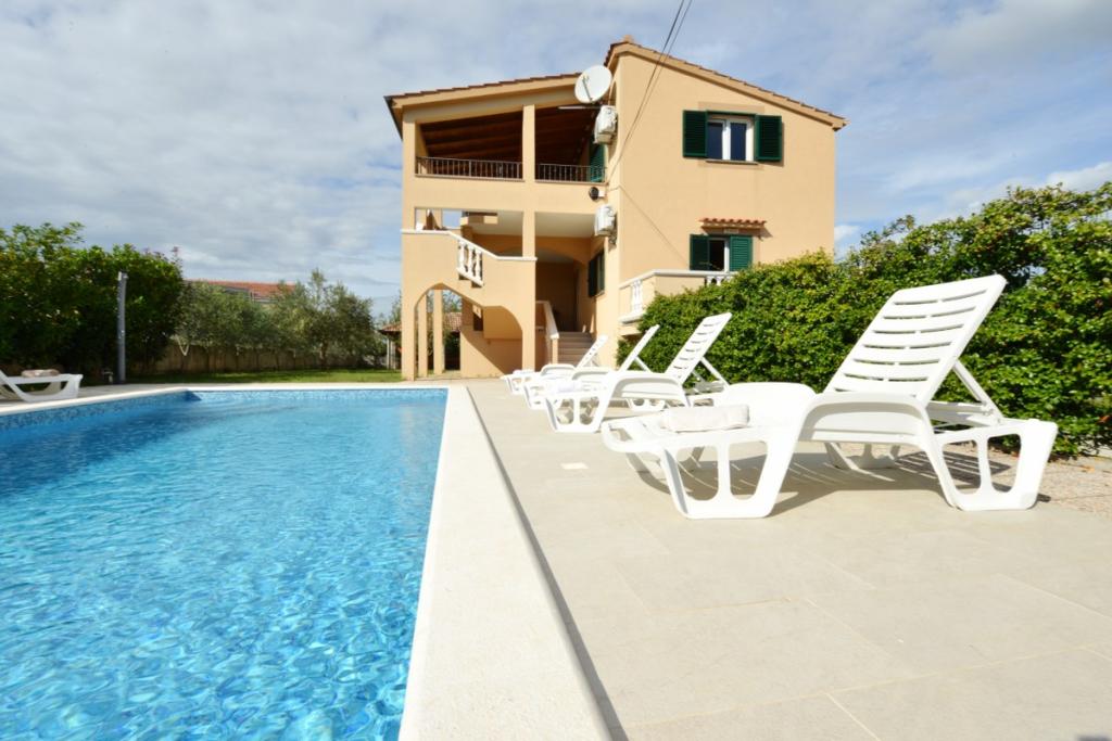 Popolnoma in moderno opremljena vila za družinske počitnice z bazenom velikosti 8 x 4 metre v zaledju Sukošana. Hiša se nahaja na zelo odmaknjenem in mirnem mestu 4 km od plaže in 15 km od Zadra, s katerim je povezana z avtocesto (10 minut). Nepremičnina je dvonadstropna hiša, ki jo sestavljajo ena troposteljna in tri dvoposteljne spalnice, dve kopalnici, dve dnevni sobi in dve kuhinji, dva balkona in ločena hišica za žar ter nadstrešek spredaj. Nepremičnina ponuja čudovit razgled na Velebit in regijo Ravni Kotar, le 4 minute hoje stran pa je položaj (100 m nadmorske višine) s panoramskim razgledom na Sukošan, otoke zadarskega arhipelaga in čudovit sončni zahod. Hiša ima neomejen in brezplačen brezžični internet, brezplačna parkirna mesta, ekološko pridelano zelenjavo, ki je na voljo gostom. Po dogovoru možnost priprave tradicionalnih dalmatinskih specialitet.