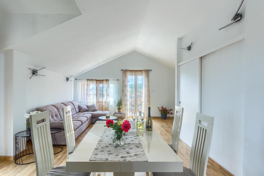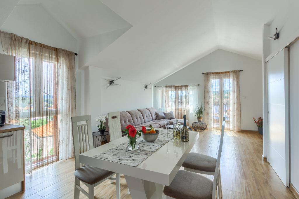 Apartmaji se nahajajo v mirnem delu Sumartina, tako da lahko uživate v miru tega čudovitega kraja. Obdan je z vrtom z mediteranskim rastlinjem in cvetjem. Razgled je spektakularen, razteza se na celotno mesto, morje in gore. To je idealna kombinacija lepote in sprostitve.