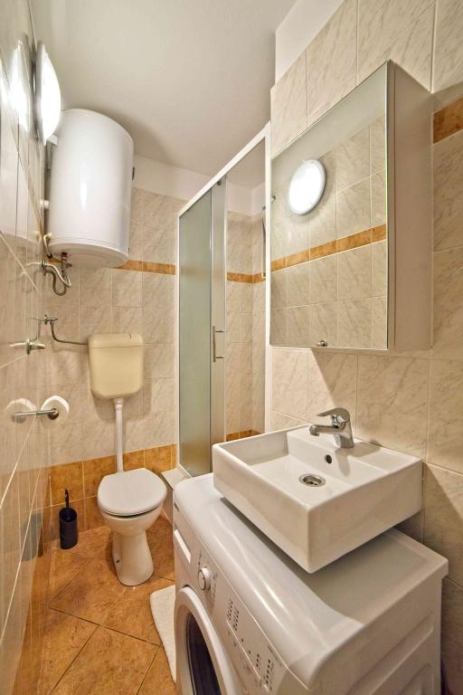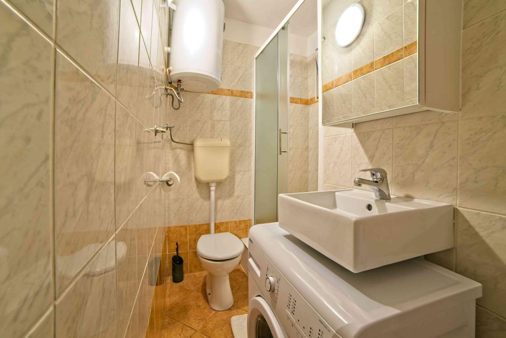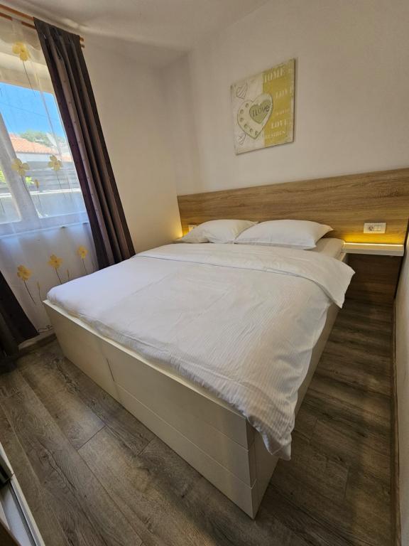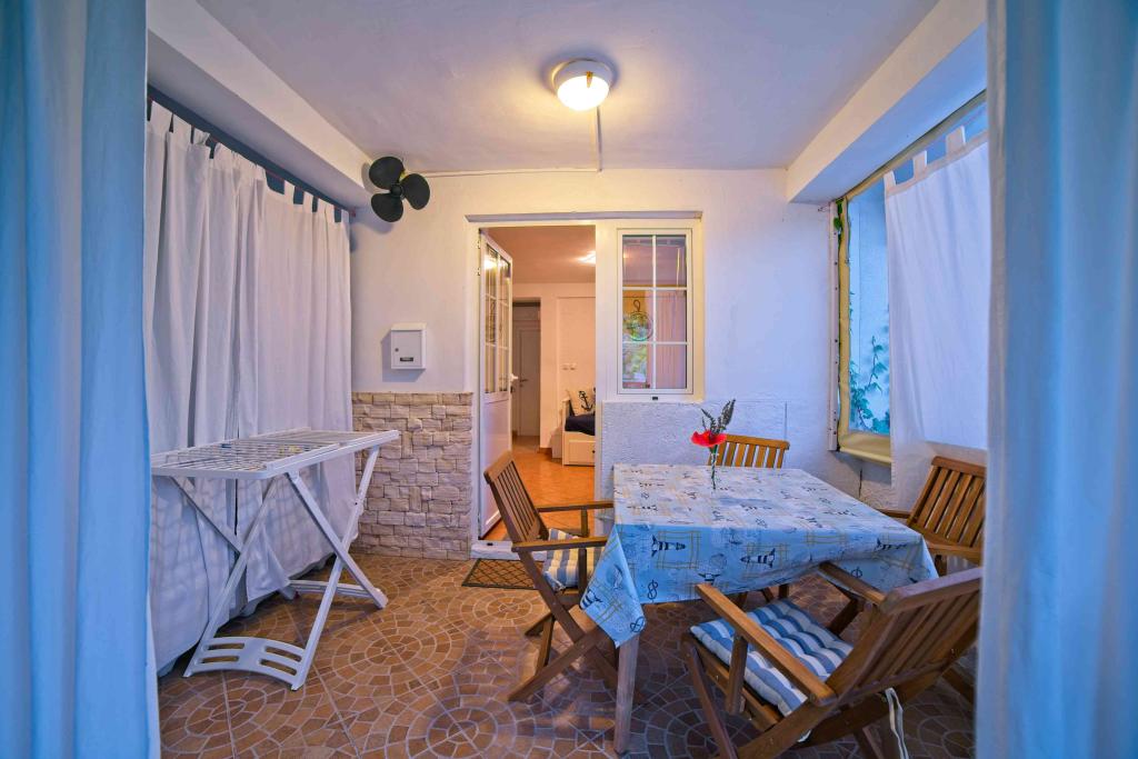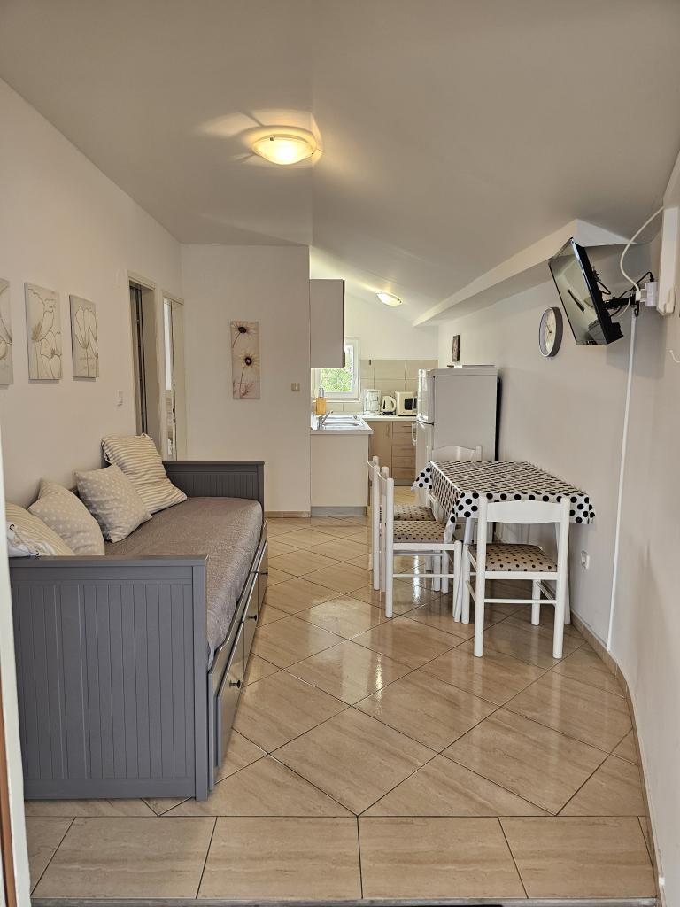 Pa smo preživeli teden dni do dveh družin. Skupno štiri odrasle in štiri otroke, stare od 4 do 11 let. Stanovanje zelo dobro opremljena, čisto, lepo, veliko mesto. Dve fantastični terase. Tik ob morju s peščeno dno in plitvo, tako da bi lahko otroci varno igrajo okoli avgust celo 50m od obale. Shop zraven najbolj potrebne stvari, in nekaj kilometrov naprej večji trg. Na primorskem baru in restavraciji, tako da boste lahko nekaj pojest čez dan. Toplo priporočam!
