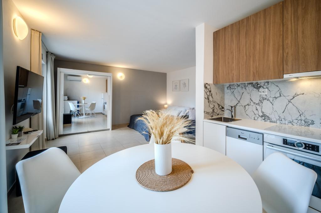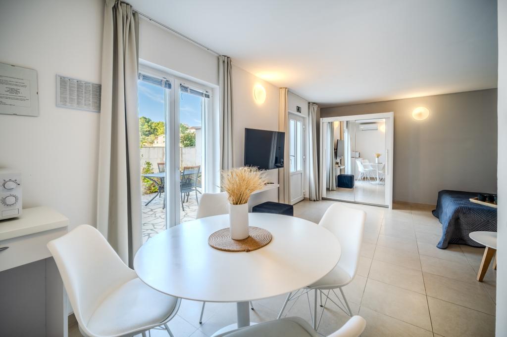 Novo urejeni apartmaji s 4 zvezdicami se nahajajo v mirnem predelu Sutivana. Vsak apartma ima veliko teraso in vključuje: wi-fi, klimatsko napravo, satelit, LCD TV, pomivalni stroj. Nahajajo se 10 minut hoje od centra, pošte, restavracij, trgovin in 100 m od ene najlepših prodnatih plaž v Sutivanu.