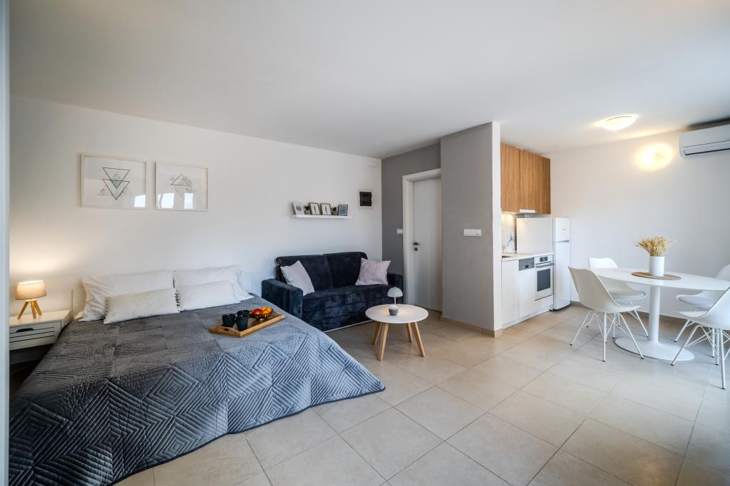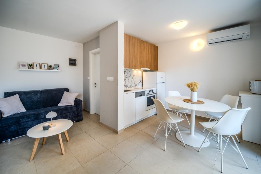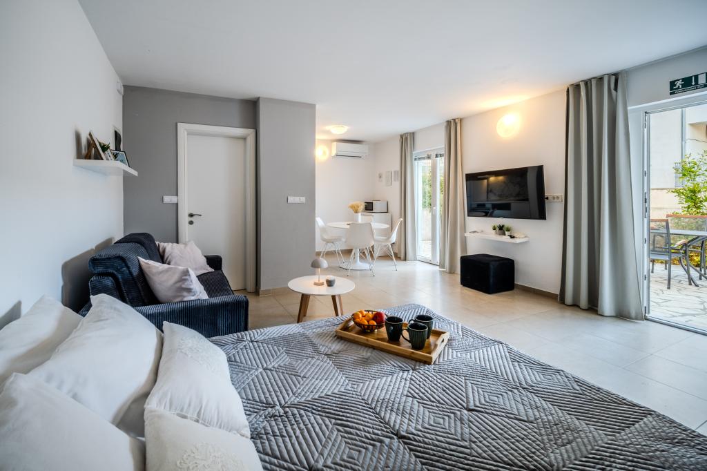 Turistična taksa je vključena v ceno.Z najemno nastanitvijo nudimo pijačo dobrodošlice, kratke informacije o vsebini mesta, šolo potapljanja, jadranje na deski, jet-ski, najem čolna in omogočili smo vsakemu gostu brezplačno uporabo kolesa. V bližini kraja, 5 min od centra, je naravni park, ki vključuje različne športne aktivnosti (odbojka, košarka, bowling), obisk konobe in obisk parka z možnostjo obiska domačih živali.