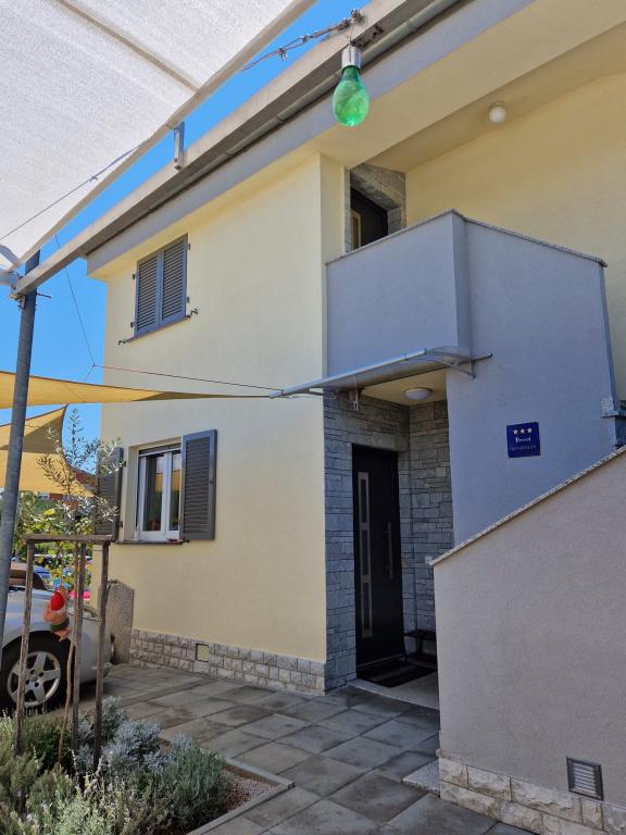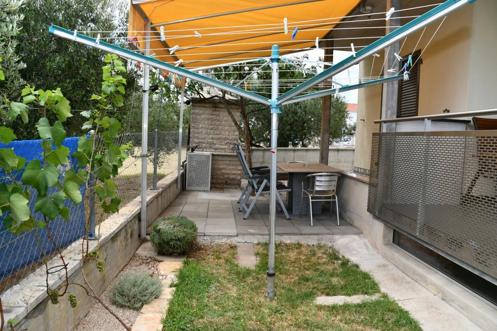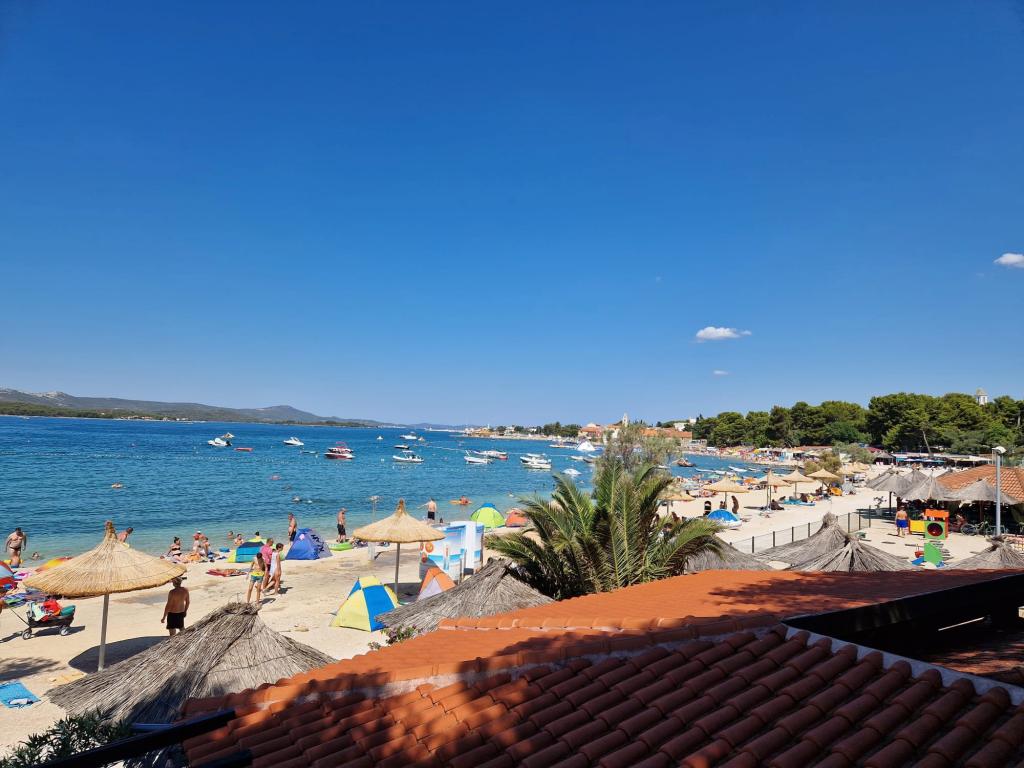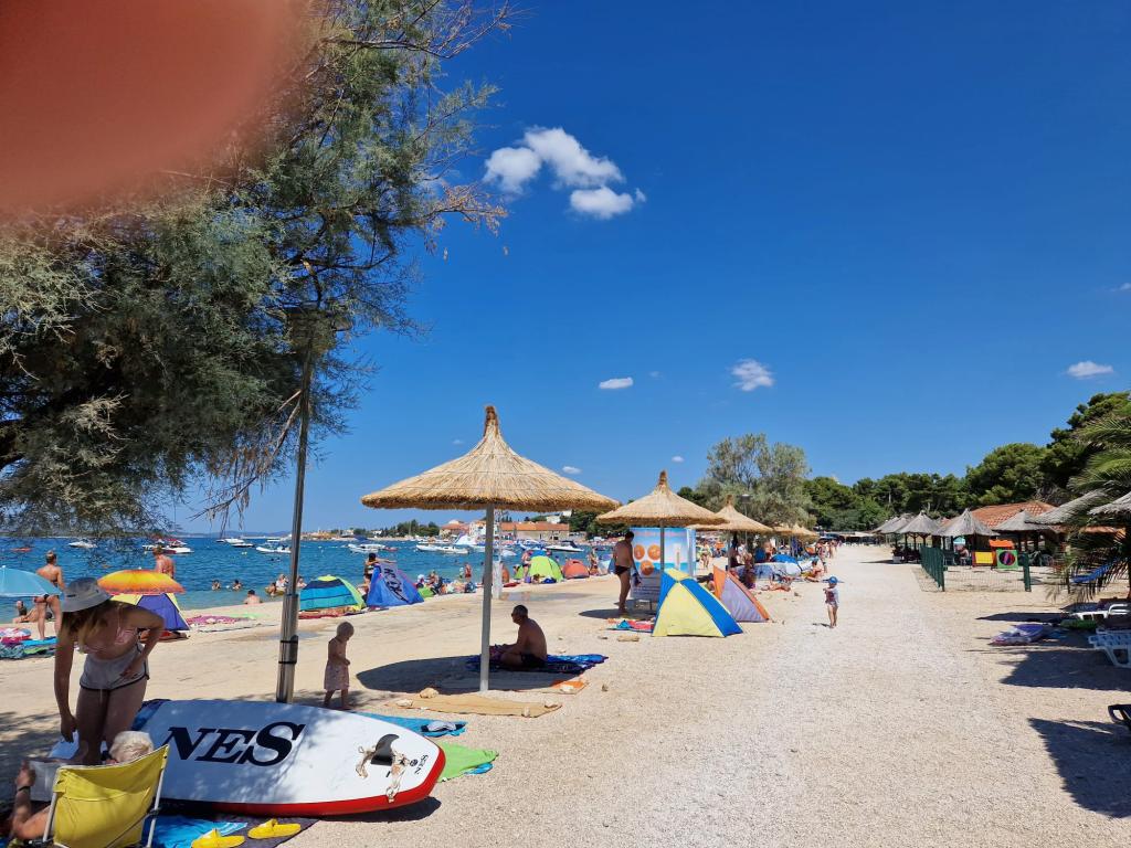 Odda se celotno zgornje nadstropje družinske hiše, z internetom, klimatsko napravo, TV, dvema spalnicama s kopalnico, dnevno sobo s kuhinjo in teraso, pokritim parkirnim mestom, žarom, avtobusno postajo v centru Filipa i Jakova, 250m hoje do plaže, 100m do trgovin, restavracij, lekarne, nakupovalnega centra 500m. Plaža je peščena, en del droben pesek, brezplačna, na voljo so različne aktivnosti za mlade in otroke ter restavracije. Nočno življenje: sprehodi ob morju, glasba v restavracijah ali na obali, za otroke zabaviščni park in vlakec "Tomica in prijatelji", 3km Biograd na Moru za še več zabave ali 26km Zadar. Iz Filipa i Jakova je možnost enodnevnega izleta na Kornate, slapove Krke, Vransko jezero, staro mestno jedro Zadra, Fun Park v Biogradu in celo Plitviška jezera itd. Za bivanje in sprostitev tukaj ne potrebujete avtomobila, vse se da narediti peš. Do hiše lahko pridete z avtobusom ali z letalom do letališča Zemunik pri Zadru (25 km). Če lastnika ni tam, so gostje običajno sami v hiši.