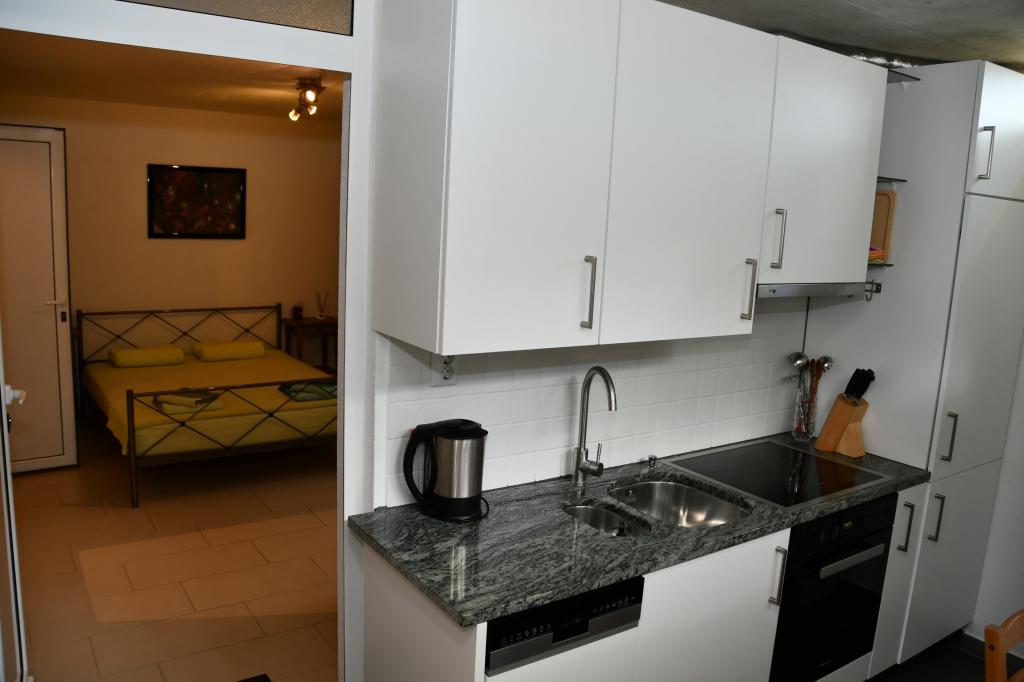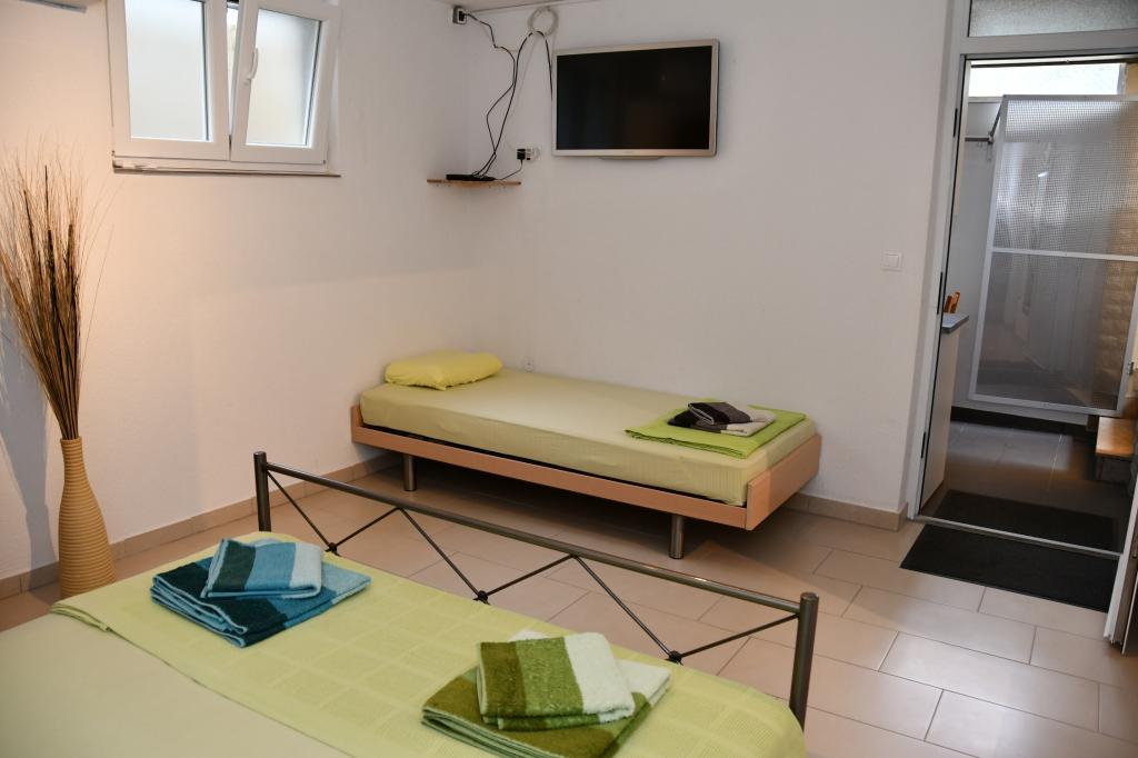 V kleti hiše se nahaja studio apartma (apartma) v celoti in moderno opremljen. Kuhinja je opremljena s kompletom kuhinjskih aparatov in jedilnega pribora, posodo, grelnikom vode, mikrovalovno pečico, pečico, pomivalnim strojem, hladilnikom itd. Spalnica: Posteljnina, brisače, TV, satelitska antena, klimatska naprava, internet. Vse je vključeno v ceno nočitve, ni dodatnih plačil.