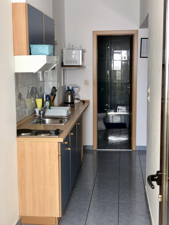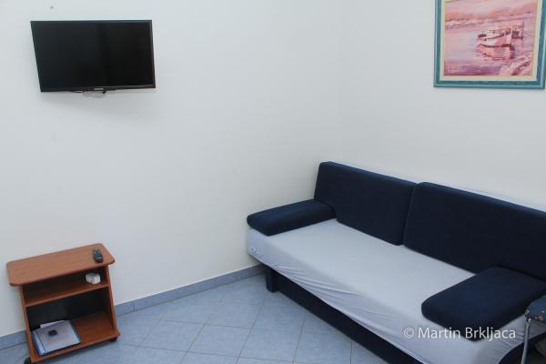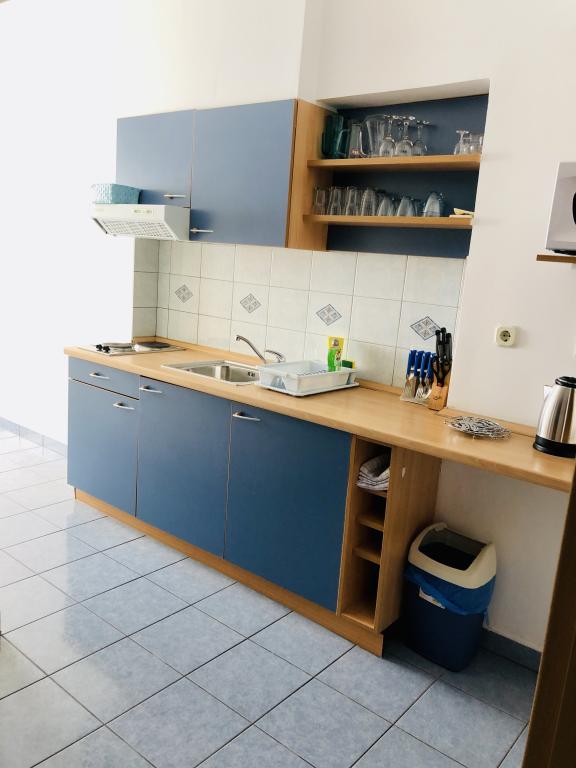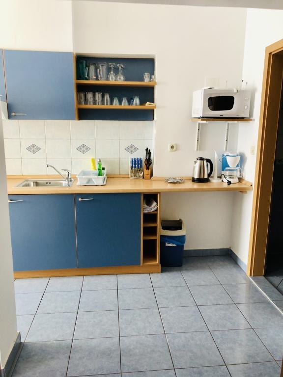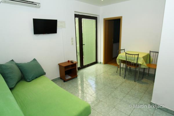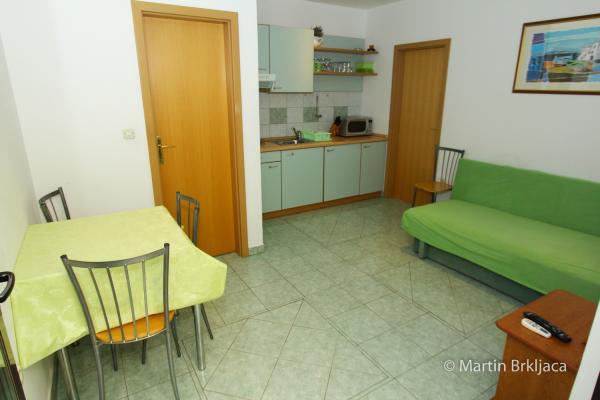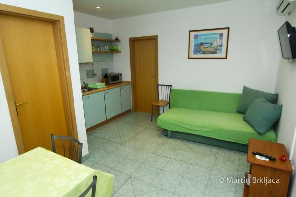 VIOLA Apartmaji so del družinski hiši v pritličju. Velikosti 46m2 vse, kar potrebujete za udobno in brezskrbne počitnice. Ti se nahajajo v bližini centra mesta in le 50 metrov od plaže. Vsi apartmaji imajo lastno parkirišče in žar, kot tudi za daljše bivanje možnost uporabe pralnega stroja. Notranje barve so namenjeni, da bo vaše bivanje pri nas bo prijetno. Modri apartma vam nenehno spominja na morje in obalo, medtem ko zelena stanovanje pomirja in spodbuja sprostitev, ki je razlog, zakaj si tukaj!