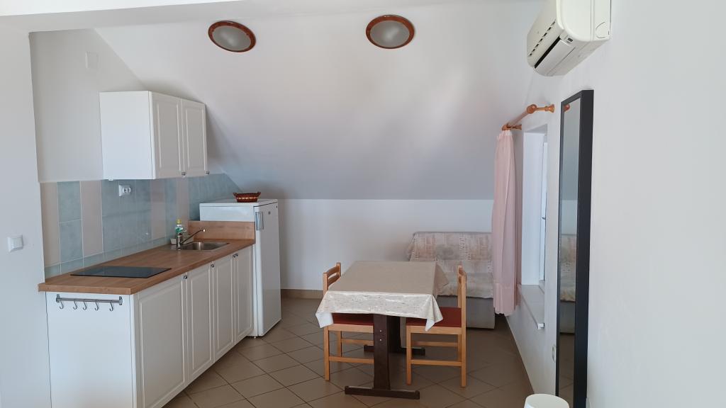 Družinska hiša, dve minuti hoje do morja. Zelo lepa in mirna turistična destinacija. Mansardni apartma (S2+1) je sestavljen iz velike sobe z zakonsko posteljo, raztegljivim kavčem in TV. Vključuje kuhinjo z jedilnico. Ima veliko kopalnico s prho in bidejem. Površina je 26m2. Velika terasa (25m2) nudi pogled na otoka Pašman in Ugljan. Garsonjera (S2) je sestavljena iz ene velike sobe, ki vključuje majhno kuhinjo in kopalnico. Ima zakonsko posteljo in TV. Ima veliko teraso s pogledom na morje in otok Pašman. Garsonjera je velika 20m2, terasa pa 14m2. Enosobno stanovanje (A2) obsega spalnico z zakonsko posteljo in TV, kuhinjo z jedilnico in veliko kopalnico. Stanovanje ima manjšo teraso in se nahaja ob strani hiše. Apartma je velik 25m2, terasa pa 3m2. Kuhanje je električno. Posteljnina je na voljo. Za vsakega gosta je zagotovljeno parkirno mesto. Žar je skupen. V bližini je več nacionalnih parkov in naravnih parkov, idealnih za enodnevni izlet.