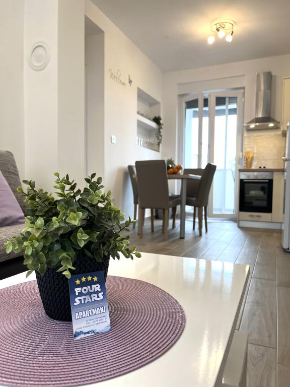 Novi luksuzni apartmaji s štirimi zvezdicami se nahajajo v Svetem Petru na moru, med Biogradom na moru in Zadrom. Apartmaji se nahajajo v prvi vrsti do morja, 40 metrov od prodnate plaže. Vsi apartmaji so klimatizirani in zvočno izolirani. Na vseh oknih in balkonskih vratih so komarniki. Vhodna vrata stanovanja so protipožarna in protivlomna, LCD TV z ravnim zaslonom s satelitskimi programi, brezplačen WI-FI. Z vašega balkona lahko uživate v čudovitem pogledu na morje in otok ljubezni - Galešnjak. Ponudba vključuje brezplačno zasebno parkirišče in žar za hišo ter jacuzzi hidromasažni bazen, ki zagotavlja popolno vsebino našega objekta. Skratka, apartmaji Štiri zvezdice vam nudijo popoln oddih in pobeg od živahnega življenja. Če ste željni adrenalinske zabave, vam je na voljo zabavni vodni park Dalmaland v Biogradu na moru (11 km). V bližini je mesto Zadar (17 km), ki je polno zgodovinskih vsebin. No, odločitev je na tebi, mi pa te pričakujemo :)