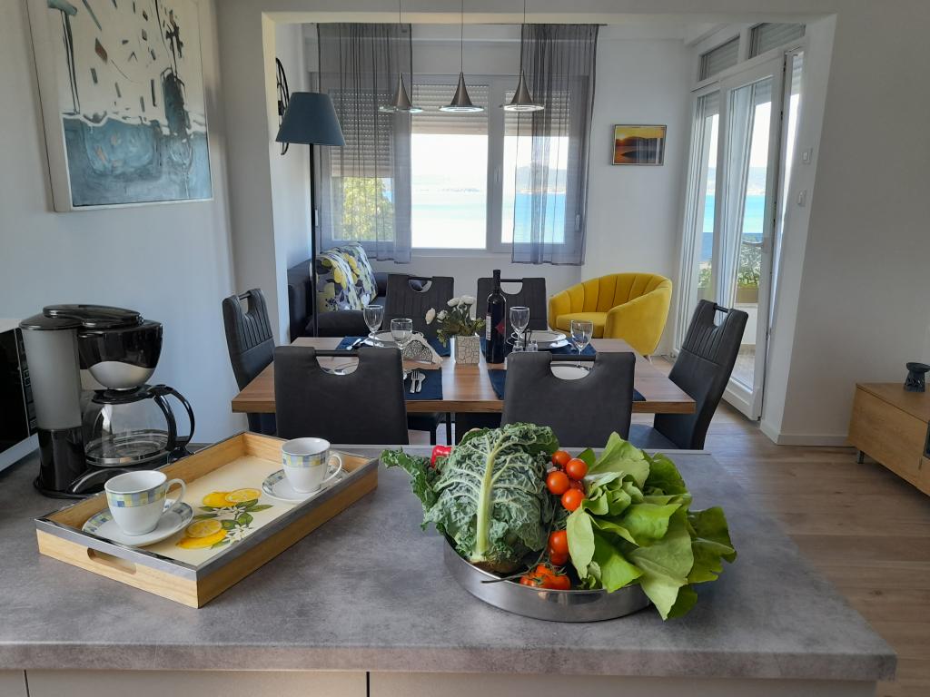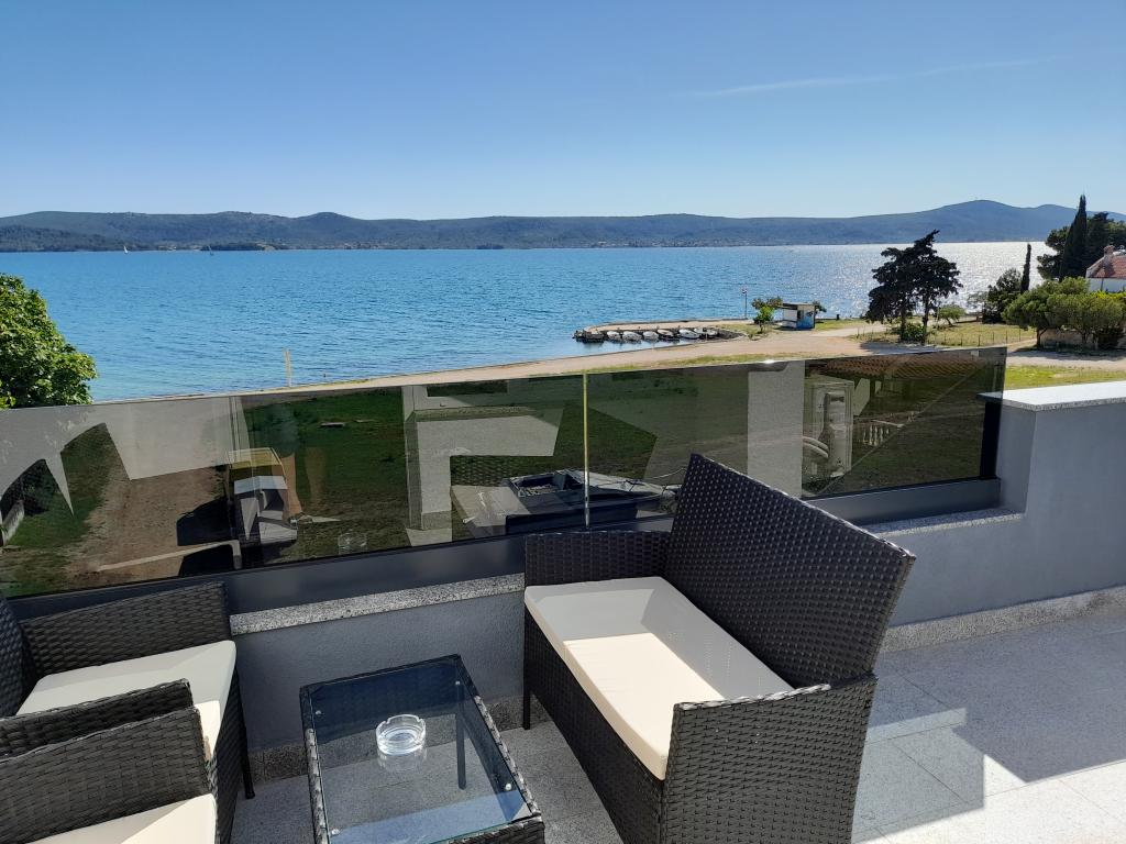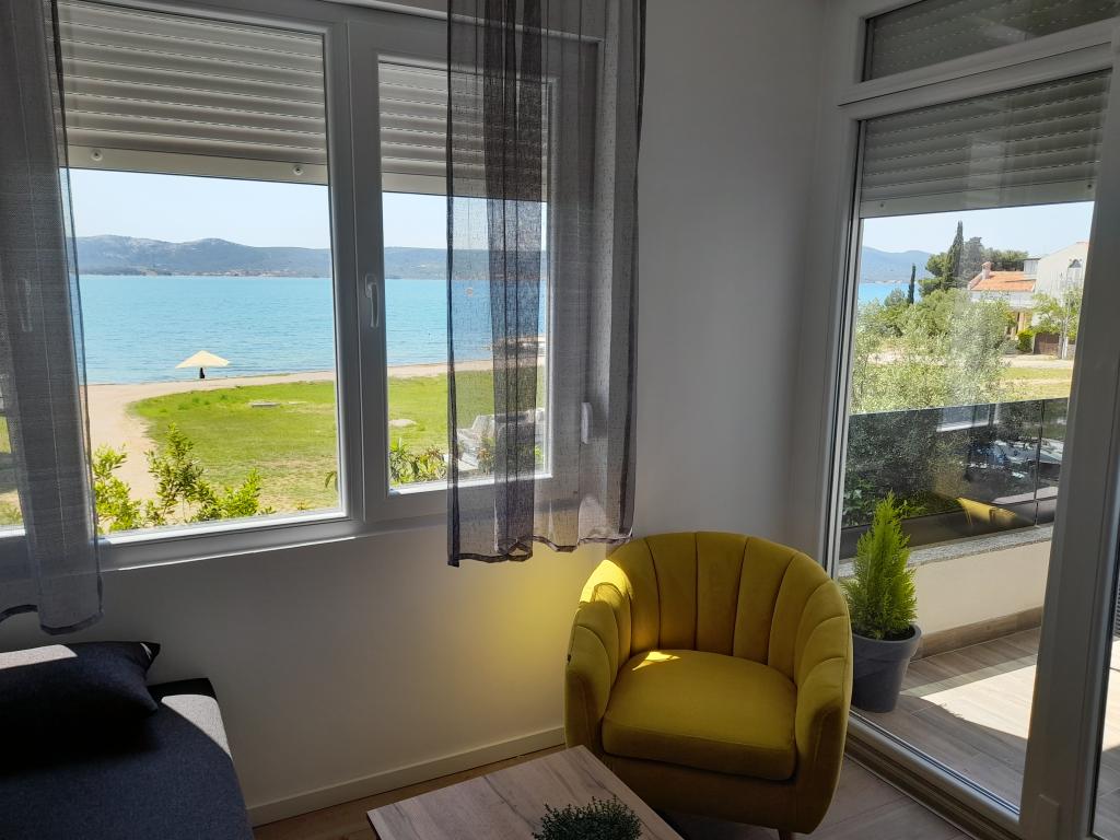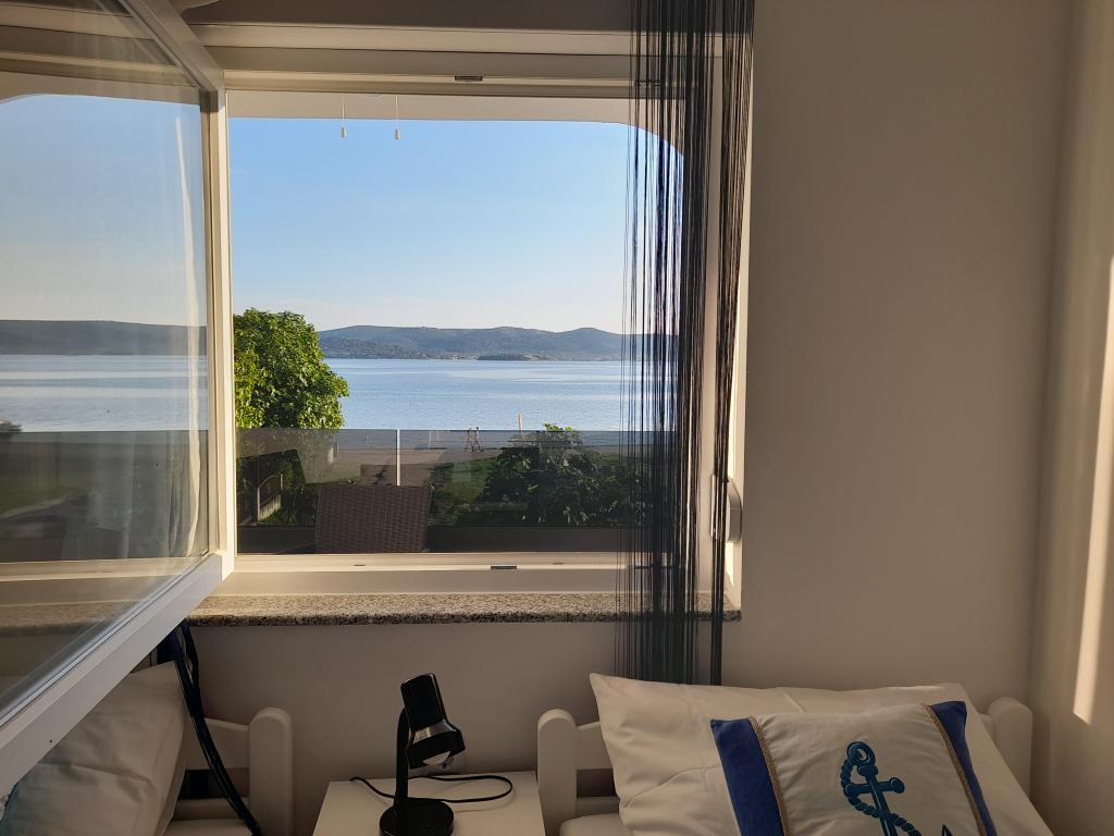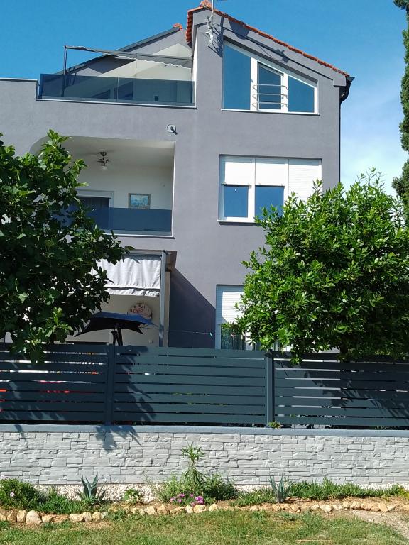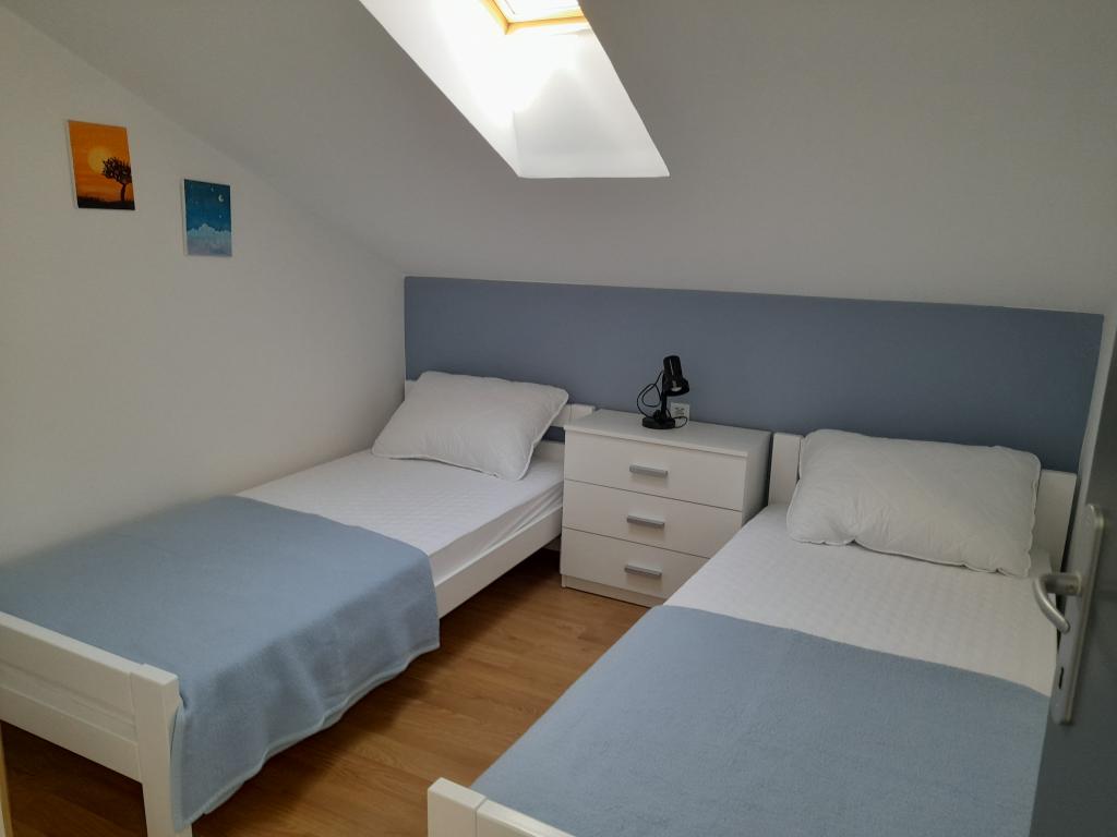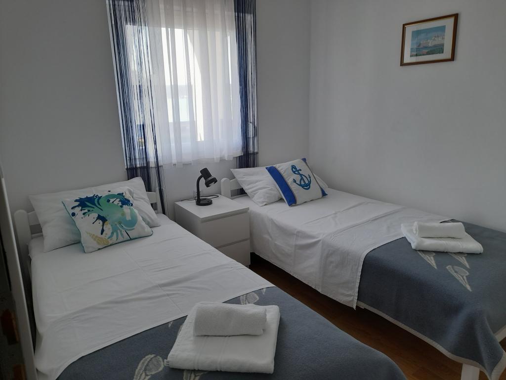 Oddam dva moderno urejena in popolnoma opremljena, klimatizirana apartmaja s čudovitim pogledom na morje, ki je oddaljeno le 60 m App. 1 (4****) se nahaja v prvem nadstropju, ima dve spalnici, kopalnico s pralnim strojem, kuhinjo, opremljeno z vsemi aparati (pomivalni stroj, mikrovalovna pečica, opekač kruha...), dnevno sobo s kuhinjsko nišo. posteljo in teraso s čudovitim pogledom na otok Pašman. App 2 se nahaja v mansardi, ima dve spalnici, kuhinjo z dnevno sobo, kopalnico in teraso s pogledom na morje. Opremljen je popolnoma enako kot App 1. Parkirišče za avtomobile je zagotovljeno na dvorišču ali pred dvoriščem.