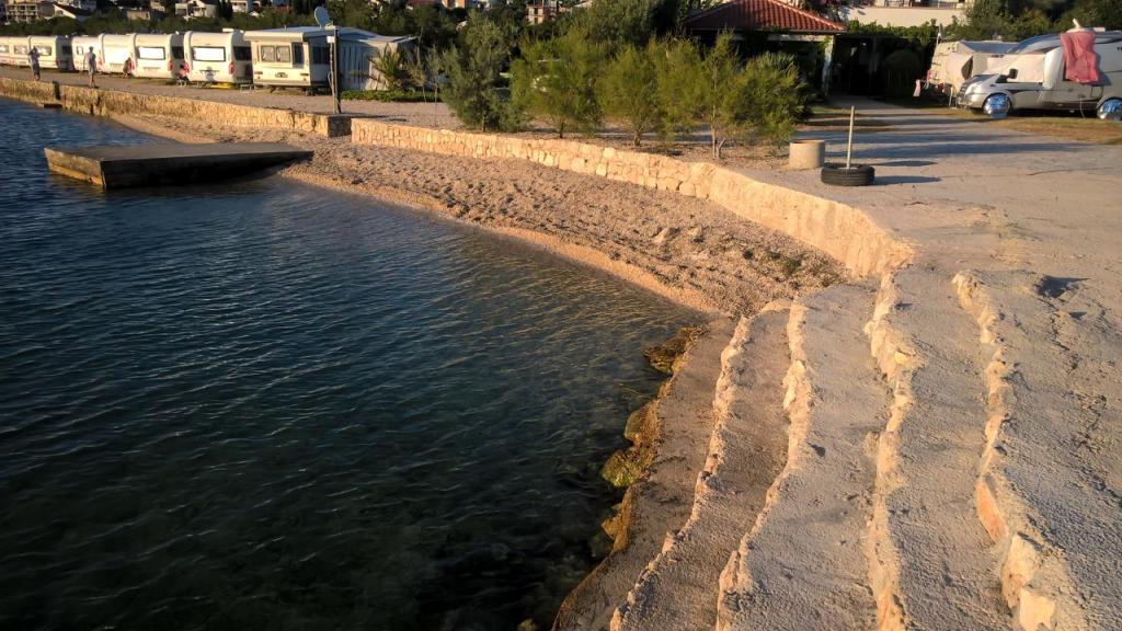 Večkrat sem bival tukaj, mirna lokacija, tik ob morju, lasten pomol, možnost priveza čolna, boja z velikim betonskim blokom, zelo prijetni lastniki, restavracija v sosednjem kampu, možnost parkiranja s prikolico, velik apartma s teraso in pogledom na Pásmo, Ugljan, zjutraj je morje kot olje, prijetno kopanje. Zelo prijetno, spet bom prišel.