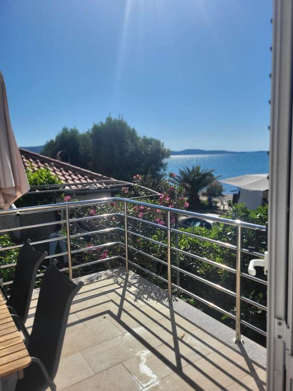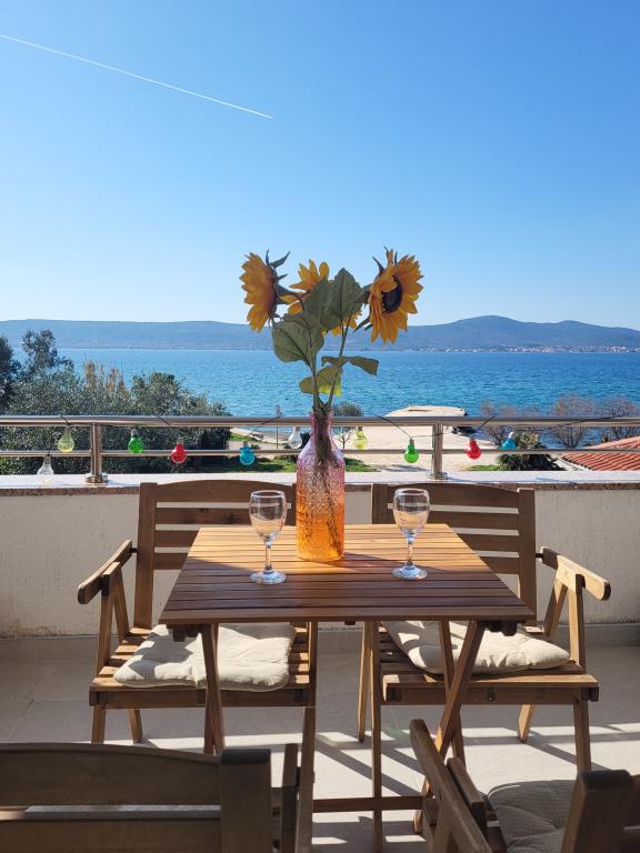 Apartma se nahaja v družinski hiši tik ob morju. Imate vse, kar potrebujete za družinske počitnice, plus čudovit razgled s terase, ki gleda na enega najlepših sončnih zahodov na svetu. Dve spalnici in kavč z zakonsko posteljo, ki lahko s pomočjo nadvložka postane udobno ležišče za eno odraslo osebo. Kopalnica ima tuš in še eno dodatno stranišče, ločeno. Pred hišo je lepa prodnata plaža z drevesi, ob kateri so ležalniki za naše goste. V sklopu hiše imamo družinski kamp s pripadajočimi stranišči in tuši, ki jih lahko uporabljate, ko ste na plaži. 5 minut hoje od hiše ob obali se nahajata picerija in bar na plaži, kjer si lahko privoščite kavo ali cocktail. Objekt se nahaja na območju, kjer so večinoma zasebni družinski kampi, zato je precej miren in prav nič pretirane gneče. V tej panogi nismo novi, zato, če vas zanimajo ocene za naš objekt, jih lahko najdete na "bookingu". Prav tako imate možnost spustiti čoln do 6 m dolžine v morje in ga privezati na bojo.