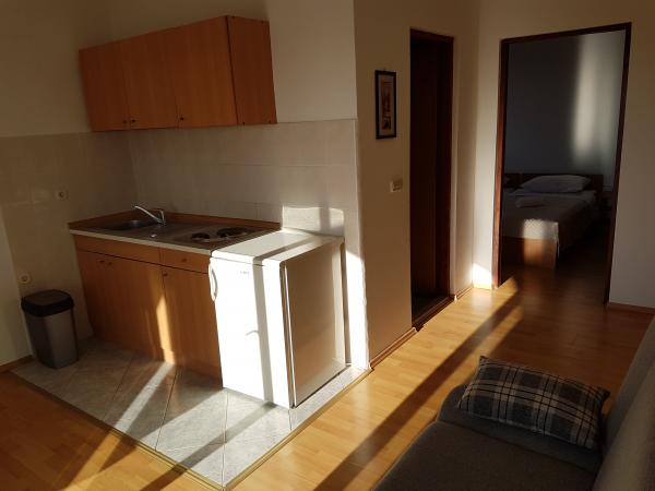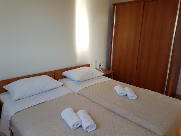 Tu smo ostali ob koncu 6. meseca! Pozdravilo naju je zelo čisto in urejeno stanovanje, namestitev se ujema s slikami! Glede na to, da je prva vrsta do morja cena zelo ugodna! Plaža je le nekaj metrov od apartmaja, kar je super, če ste z otroki! Kraj je zelo tih in ravno zaradi tega nam je bilo všeč! Domačini so prijazni in prijazni in upamo, da bomo lahko prišli še nekajkrat! Imamo lep spomin!