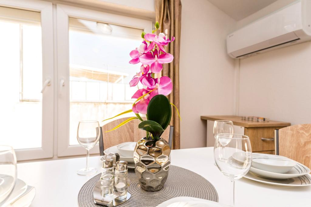 Turistična taksa je vključena v ceno. Dokument o potrditvi rezervacije ob rezervacijiPijača dobrodošlice je vključena v ceno. Možnost uporabe zunanje prhe, žara, bazena, ležalnikov in koles kot skupni pralni stroj