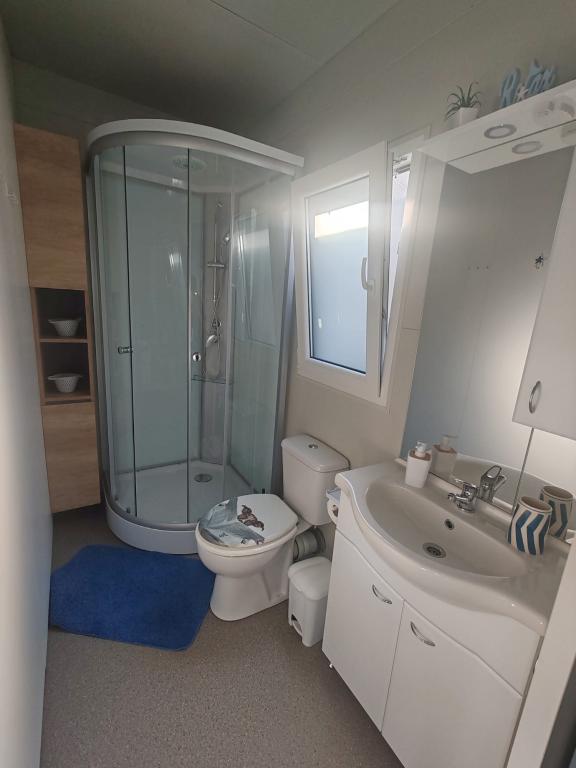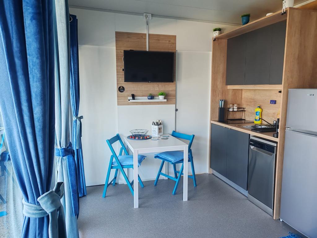 Nova popolnoma opremljena mobilna hišica se nahaja v prenovljenem kampu Tamaris. Hiša je v celoti opremljena z vsemi pripomočki za prijeten dopust. Prednost hiše je bližina čudovite plaže, ki je oddaljena le 15 metrov. Opis hiše: -2 spalnici z zakonskimi posteljami (140x200 in 160x200) in posteljnino -kuhinja z dnevno sobo (raztegljiva miza, raztegljiv kavč) -kopalnica (brisače in sušilnik za lase) -velika prostorna terasa (miza + 6 stolov, pohištvo in stoli za sedenje, plinski žar z dodatnim gorilnikom za kuhanje)