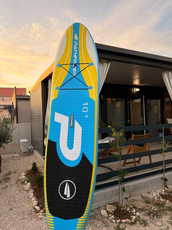 Čudovita mobilna hišica ob morju, le nekaj korakov do čudovite prodnate plaže in mirne obale, blizu restavracij in kavarn, prijetna za počitek in druženje s prijatelji, primerna za otroke, saj se lahko sprehodijo do kopanja kar od same hišice.