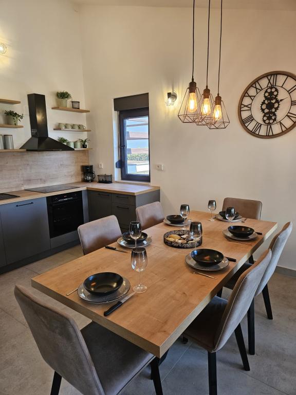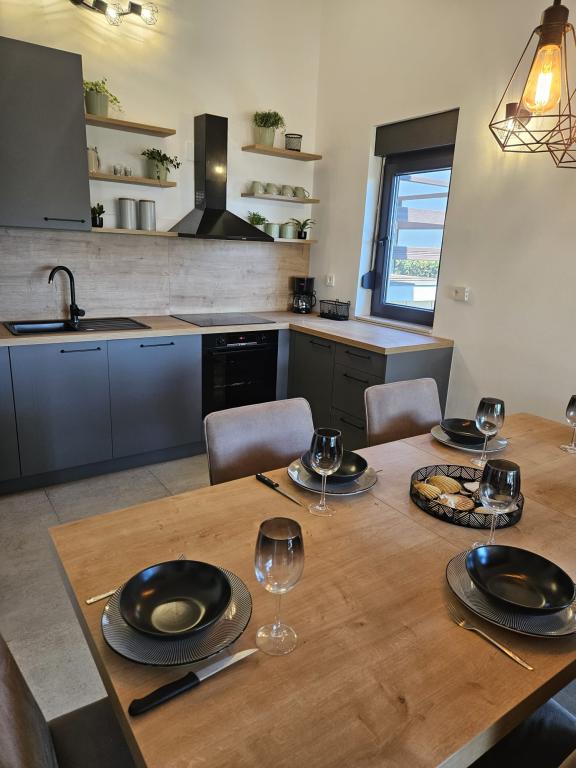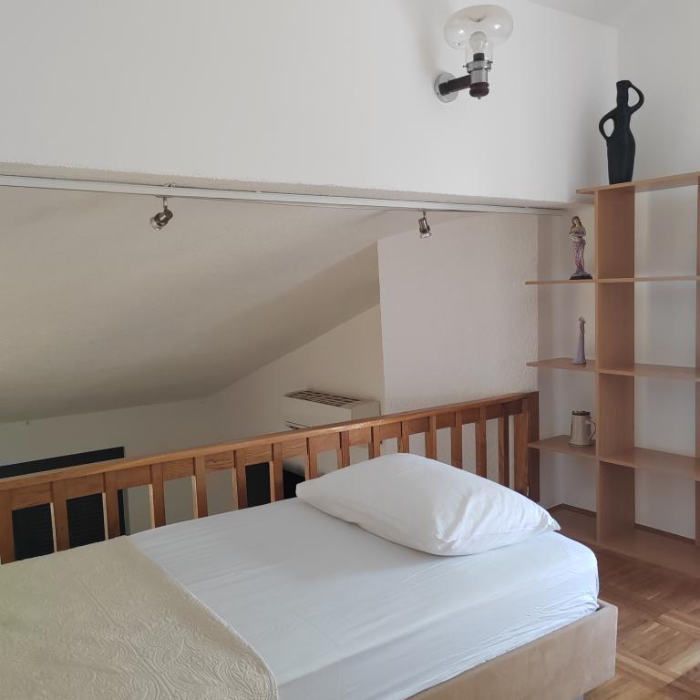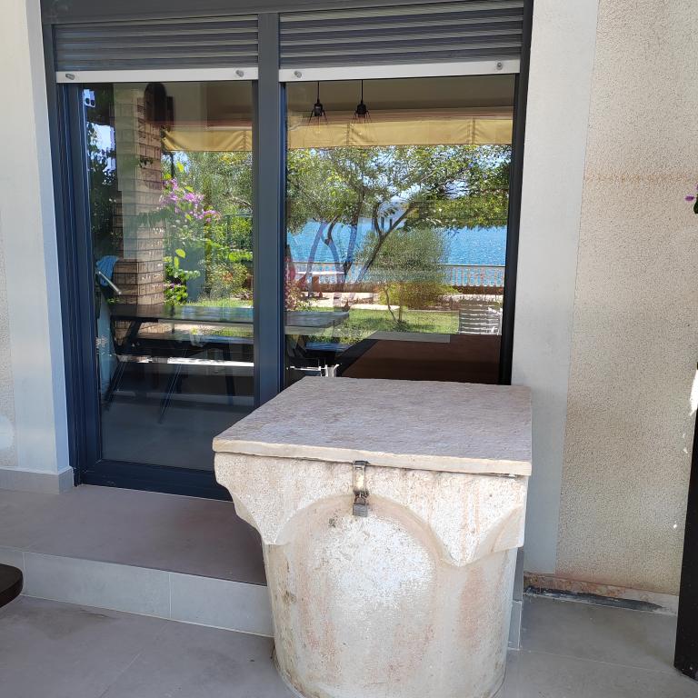 Popolnoma opremljena očarljiva hiša s štirimi spalnicami in dvema terasama sredi zasebnega vrta, s katerega se lahko kadar koli spustite direktno do morja in plaže. Popolna lokacija za sproščujoče počitnice, sončenje v zasebnosti, peko na žaru ob morju in uživanje v morskih radostih. Hiša je bila letos delno obnovljena.