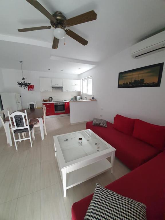 Sobe in apartmaji s čudovitim pogledom na morje, le 50 m od morja. Vsi imajo balkon, kjer se lahko sprostite in uživate v čudovitem razgledu na otok Murter. Apartmaji so moderno opremljeni. Vsaka soba ima lastno kopalnico. V vsaki sobi sta tudi hladilnik in električni grelnik vode. Parkirišče in privez za čolne sta zagotovljena.