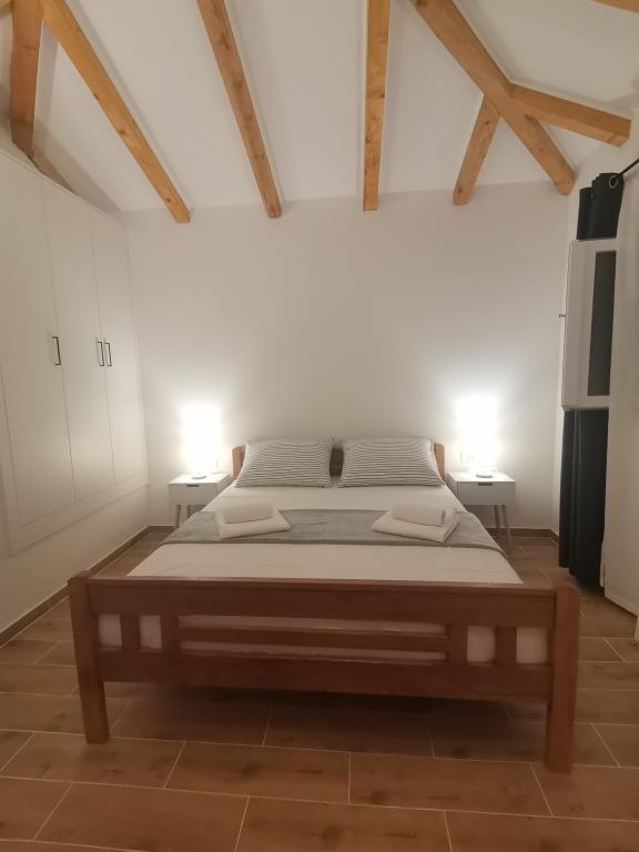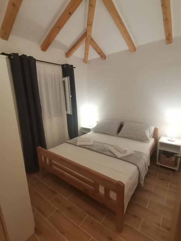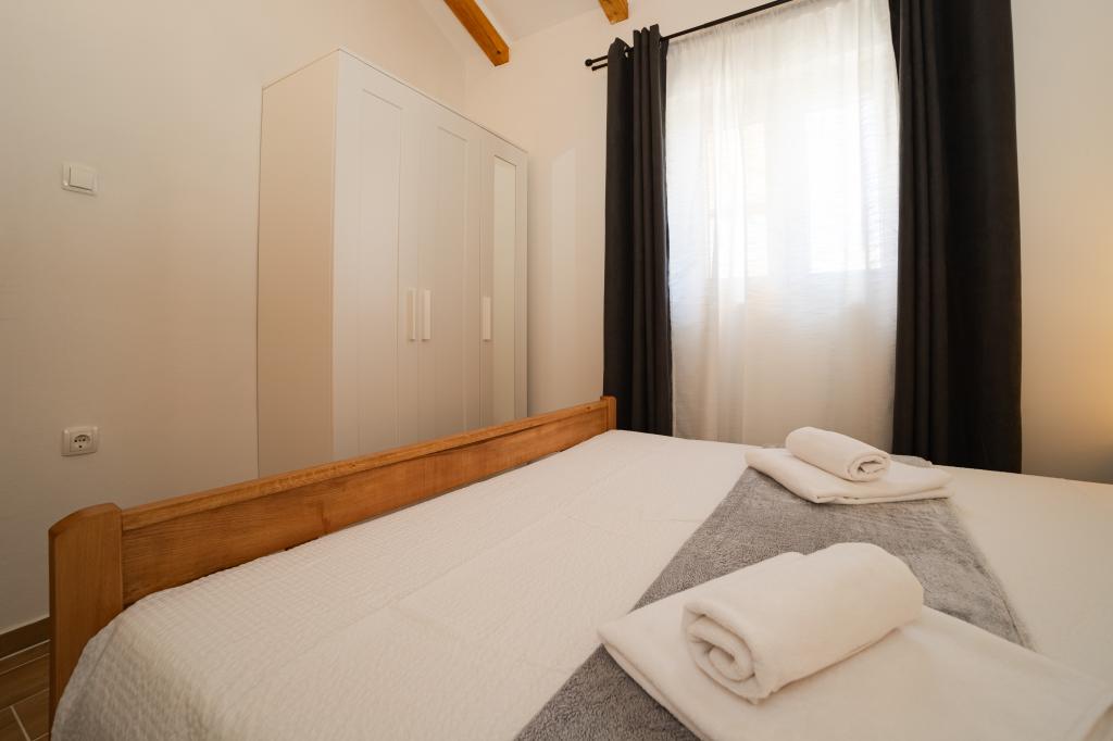 Obnovljena hiša v središču mesta, korak stran od morja in plaže, dvonadstropna. V pritličju se nahaja popolnoma opremljena kuhinja, dnevna soba in stranišče, v prvem nadstropju pa dve spalnici in kopalnica. Klimatizirano pritličje in prvo nadstropje. Velik vrt v primeru, da imate kolesa, kanuje itd., je prostor za njihovo shranjevanje in zasebno parkirišče (ki je primerno tudi za večja vozila). Ograjena terasa (za varnost otrok in hišnih ljubljenčkov) s plinskim žarom. Hiša se nahaja ob glavni cesti v mestu. Možnost organizacije priveza za čolne. MOŽNOST MESEČNEGA NAJEMA V PREDSEZONI IN POSEZONI, ZA VEČ INFORMACIJ NAS KONTAKTIRAJTE