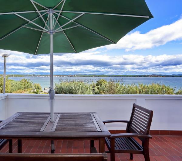 Sodobni apartmaji 20 metrov od peščene plaže in morje na otoku Pašman! Prijetna, prostorna in ne hrupa. Parkirišče v senci, brezžični internet in klimatsko vključeni. Apartma Tkon Rutak I (A4) ima sposobnost, da sprejme 5. osebo doplačilo.
