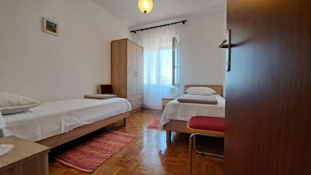 Stanovanje je zelo prostorno, odlično opremljeno in čisto. Ima prostorno teraso s pogledom na morje skozi oljčni nasad. Domačini so zelo prijetni, zabavali vas bodo z zelenjavo in figami z lastnega vrta. Apartma je od peščene plaže in središča Tkona oddaljen nekaj minut hoje.