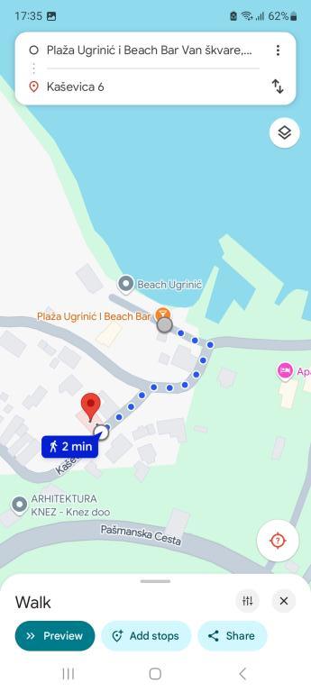 Popolnoma opremljeni apartmaji v mirnem in slikovitem mestecu Ugrinići, le 100 m od plaže. Idealni za počitnice brez gneče in hrupa. V vasi je le kavarna. Ostali objekti se nahajajo približno 2 km od trajektnega pristanišča Tkon.