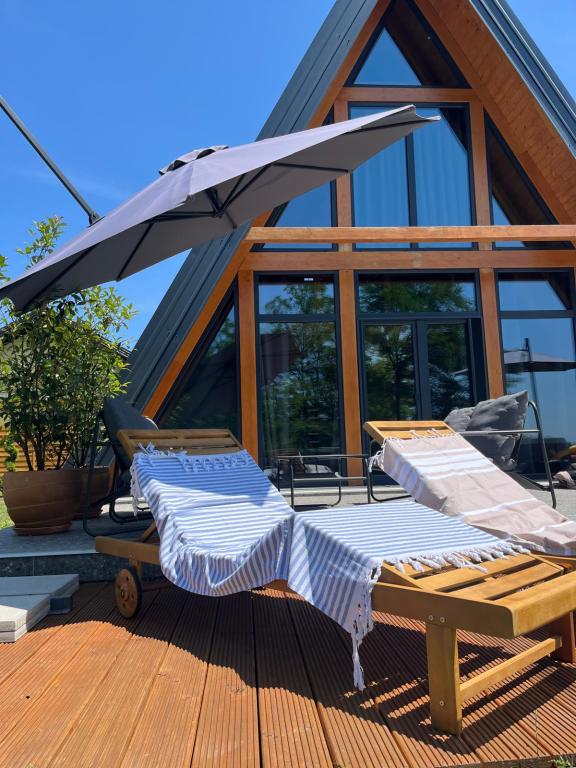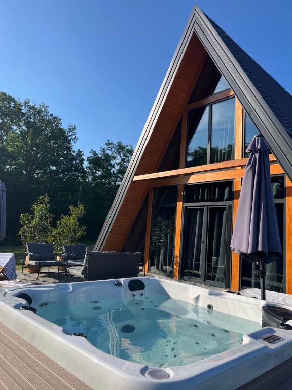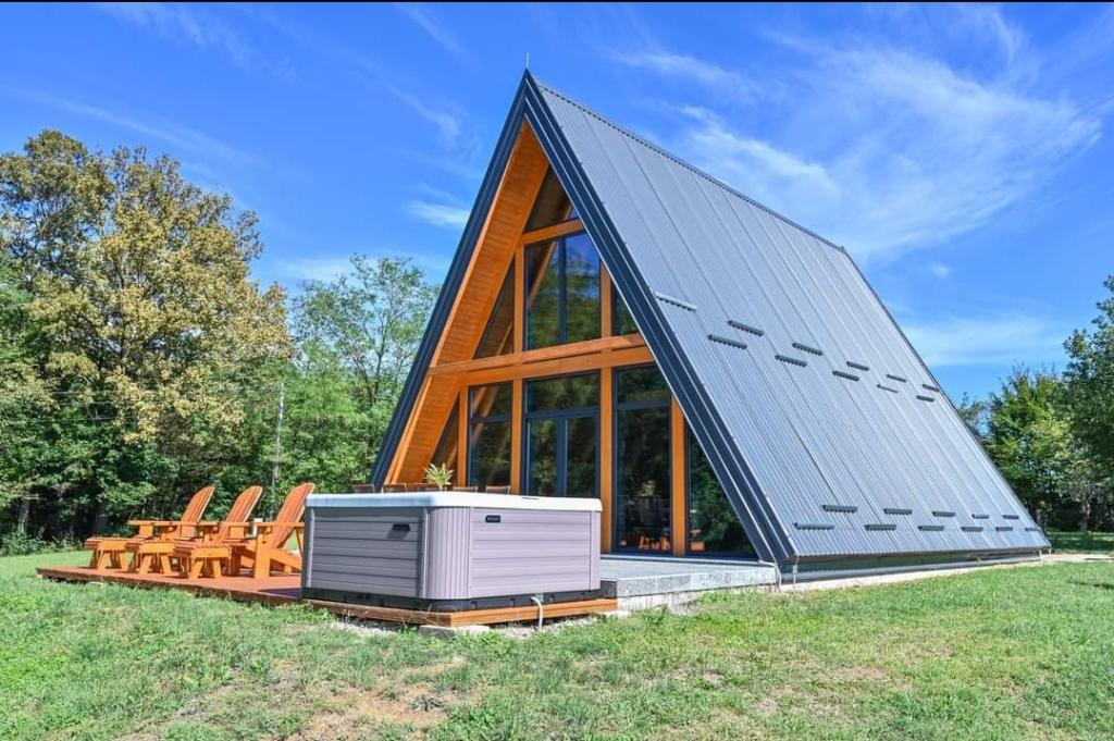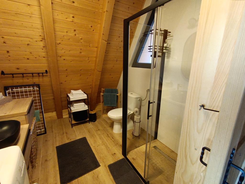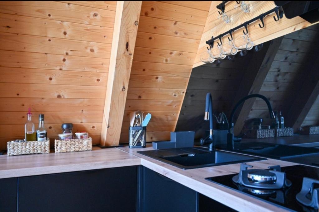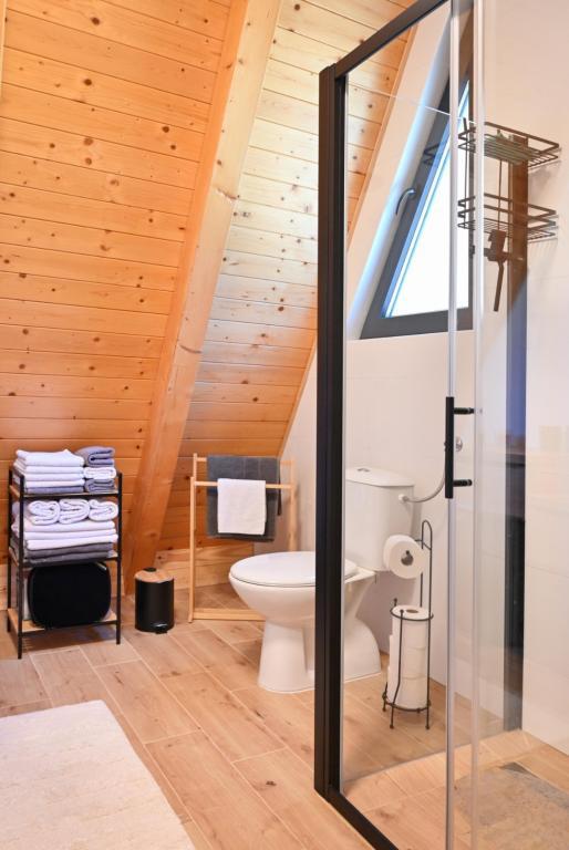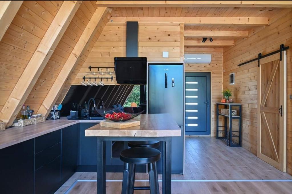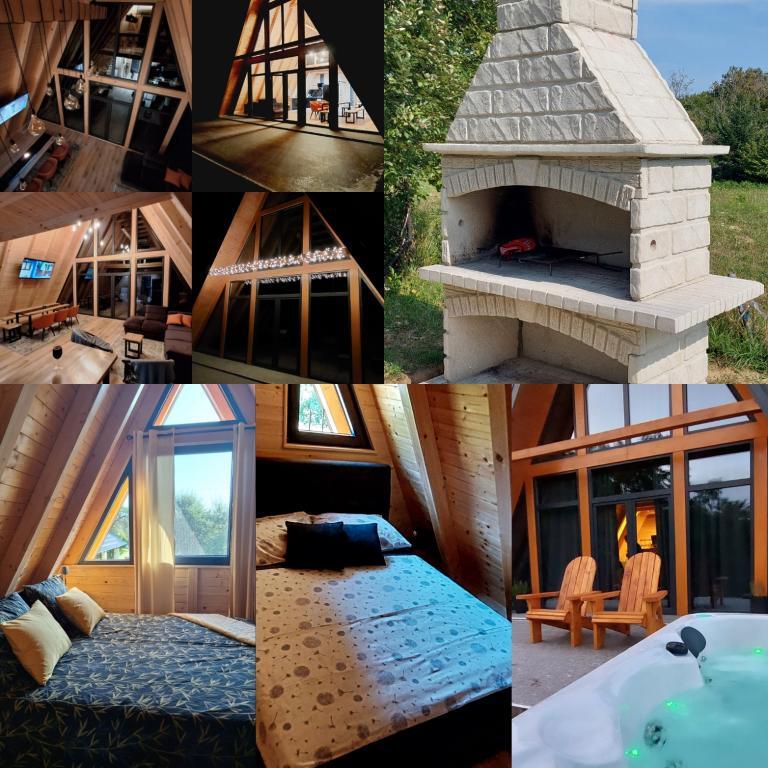 Hiša je sestavljena iz 2 sob z zakonsko posteljo, kuhinje, dnevne sobe in jedilnice v enem, WC-ja, velike pokrite terase in še večje nepokrite terase, kjer je hidromasažni ogrevan bazen s 40 curki, ki vas masirajo. gledate v zvezde in uživate v svoji najljubši pijači., aparat za kavo, družabne igre in zunanji žar, kjer lahko pečete na žaru (lokalna mesnica 4 km). Hiša ni namenjena fantovščini in hišni ljubljenčki niso dovoljeni .