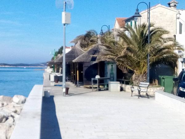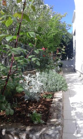Novo prenovljen in popolnoma opremljen apartma, sestavljen iz dveh spalnic s 4 fiksnimi posteljami in 1 dodatno, opremljeno kuhinjo, kopalnico z WC-jem, dnevno sobo. S terase se odpira čudovit pogled na dalmatinsko rastlinje. Žar je na vmesni etaži in je vedno na voljo gostom. Vrt ponuja možnost popolne sprostitve za otroke in starejše. Na voljo je tudi zunanja prha. Apartma se nahaja 5 minut hoje od plaže in centra mesta, zato ponuja možnost zabave, pa tudi tišine za počitek, ko ga gost potrebuje. Tribunj se nahaja le 15 km od Šibenika, v bližini slapov Kornati, Skradin in Krka, kar ponuja dodatne možnosti za izlete. Studio hiša je ločena zgradba, idealna za dve osebi. Studio je zasnovan kot edinstvena enota - spalni del z zakonsko posteljo in kuhinjo ter ločeno kopalnico. Pred studiem je terasa s pogledom na vrt.