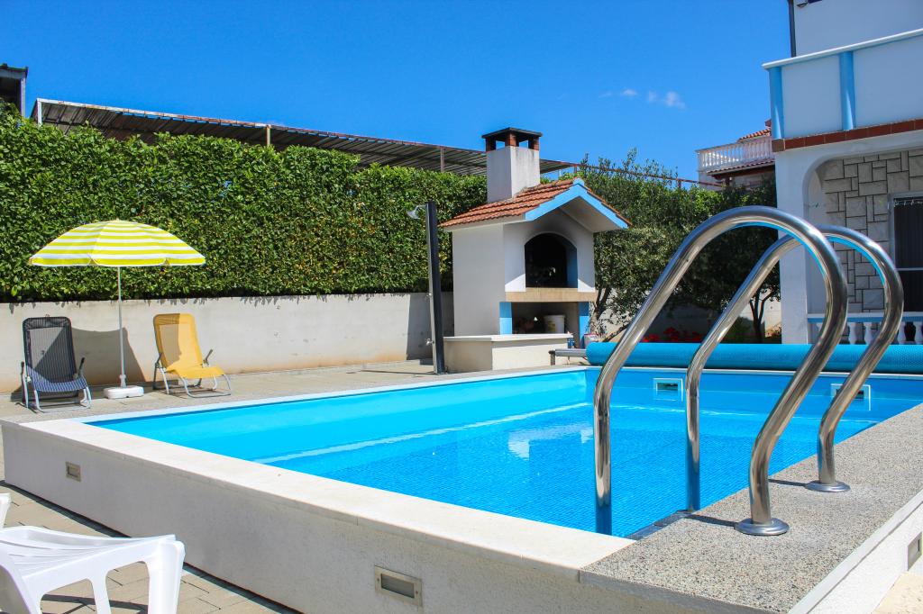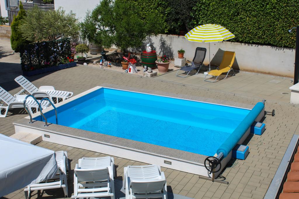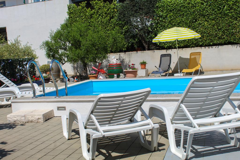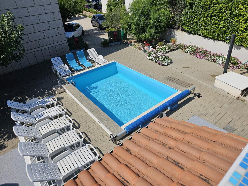 Bazen je na voljo vsem gostom. APARTMA A1 (klima) - se nahaja v pritličju in je sestavljen iz kuhinje, dveh kopalnic, dveh spalnic za štiri osebe, dnevne sobe, TV-SAT, WI-FI, majhnega balkona s teraso in parkirnega mesta. APARTMA A2 (klima) - se nahaja v prvem nadstropju in je sestavljen iz kuhinje, kopalnice, ene spalnice z majhnim balkonom, dnevne sobe z raztegljivim kavčem za dve osebi, TV-SAT, WI-FI, velike terase in parkirnega mesta. APARTMA A3 - se nahaja v prvem nadstropju in je sestavljen iz kuhinje, kopalnice, ene spalnice z majhnim balkonom, dnevne sobe z raztegljivim kavčem za dve osebi, TV-SAT, WI-FI, velike terase in parkirnega mesta.