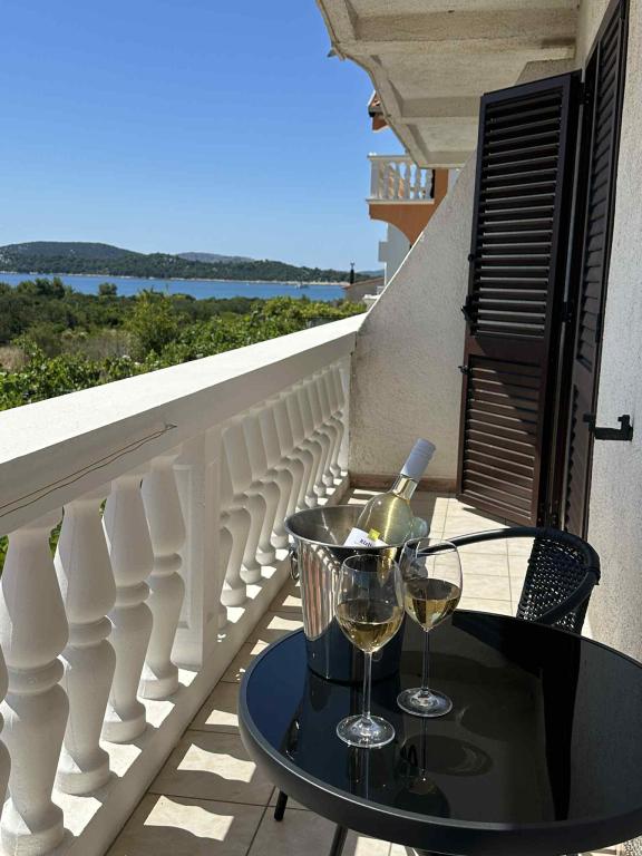 Apartmaji - Emelie, ki se nahajajo v mirnem in zelo lepem delu Tribunja, kapaciteta je od 2 do 22 oseb, apartmaji imajo pogled na morje in lastno kuhinjo, WC in tuš. Za naše goste je na voljo brezplačen brezžični internet. Žar, parkirišče. V apartmaju 2 + 1 (2 odrasla in otrok do 12 let). Morje je oddaljeno 300 m od apartmaja, plaža je primerna za otroke. Obstajajo številne možnosti za izlete, tako (Krka, Kornati, Plitvička jezera, Paklenica). Dobrodošli v Apartmajih-Emelie.