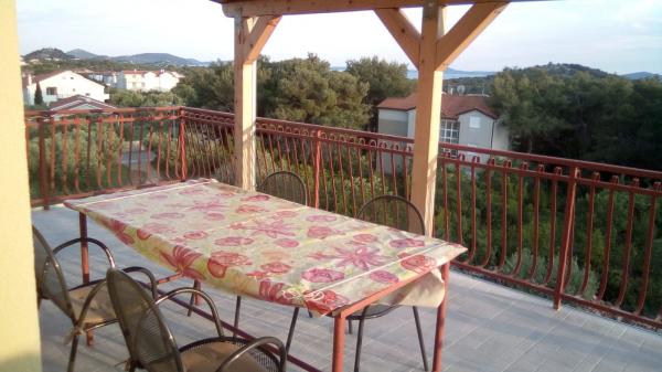 Apartma se nahaja v Sovlji pri Tribunju pri Vodicah in Šibeniku. Sovlja je mirno mesto, idealno za družinske počitnice. V bližini sta dva nacionalna parka Krka in Kornati. Naša lastnina se nahaja 5 min. do plaže, 200 m stran so picerija in restavracija, in majhen je kiosk s kruhom in piškoti. Apartmaji so opremljeni z najbolj osnovnimi stvarmi, posteljnino, brisače, brisače. Upam, da se bodo odločili za naš cilj.