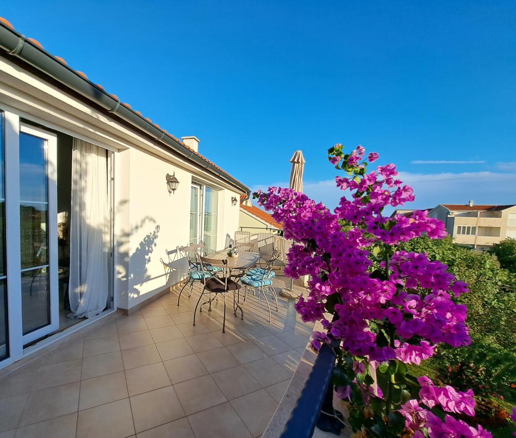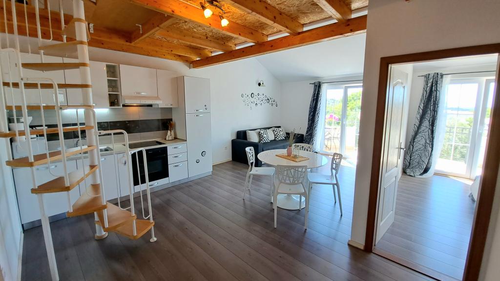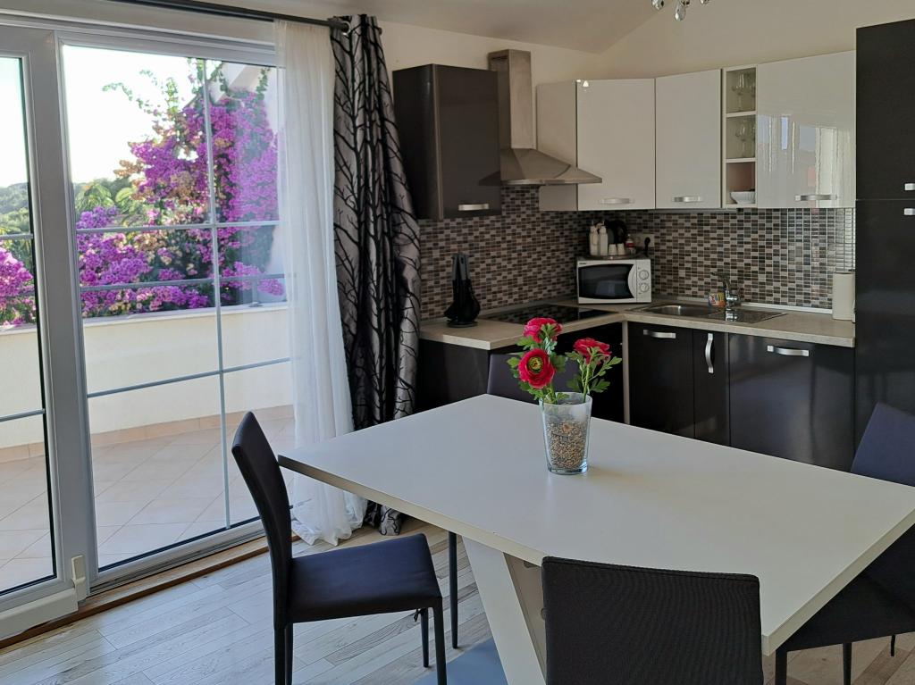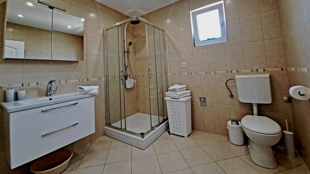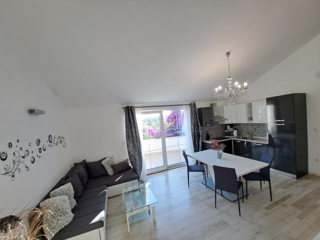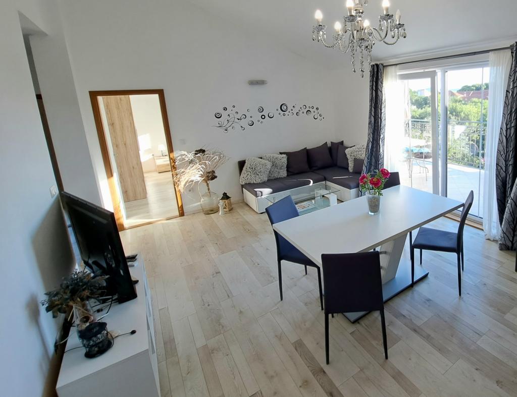 Apartmaji "OAZA MIRA" se nahajajo v zasebni, družinski hiši, 3 apartmaji, kapaciteta od 4 do 18 oseb. Obdani z zelenjem in cvetjem, počitek za oči in ušesa. Tukaj vas bodo uspavale in zbudile ptice. Apartmaji, ki jih ponujamo, so veliki 65 m², dva sta dvonadstropna (galerije s spalnico približno 20 m2). Vsi apartmaji imajo dve spalnici, jedilnico, popolnoma opremljeno kuhinjo, kjer boste našli vse, kar potrebujete (mikrovalovna pečica, opekač kruha, pečica, aparat za kavo, pralni stroj), velike kopalnice. Apartmaji so prostorni in klimatizirani. Brezplačen internet (wi-fi), satelitska televizija. Vsi apartmaji imajo teraso ali balkon s pogledom na morje, vrt in hribe. Brezplačno zasebno parkirišče je na voljo v stavbi in rezervacija ni potrebna.